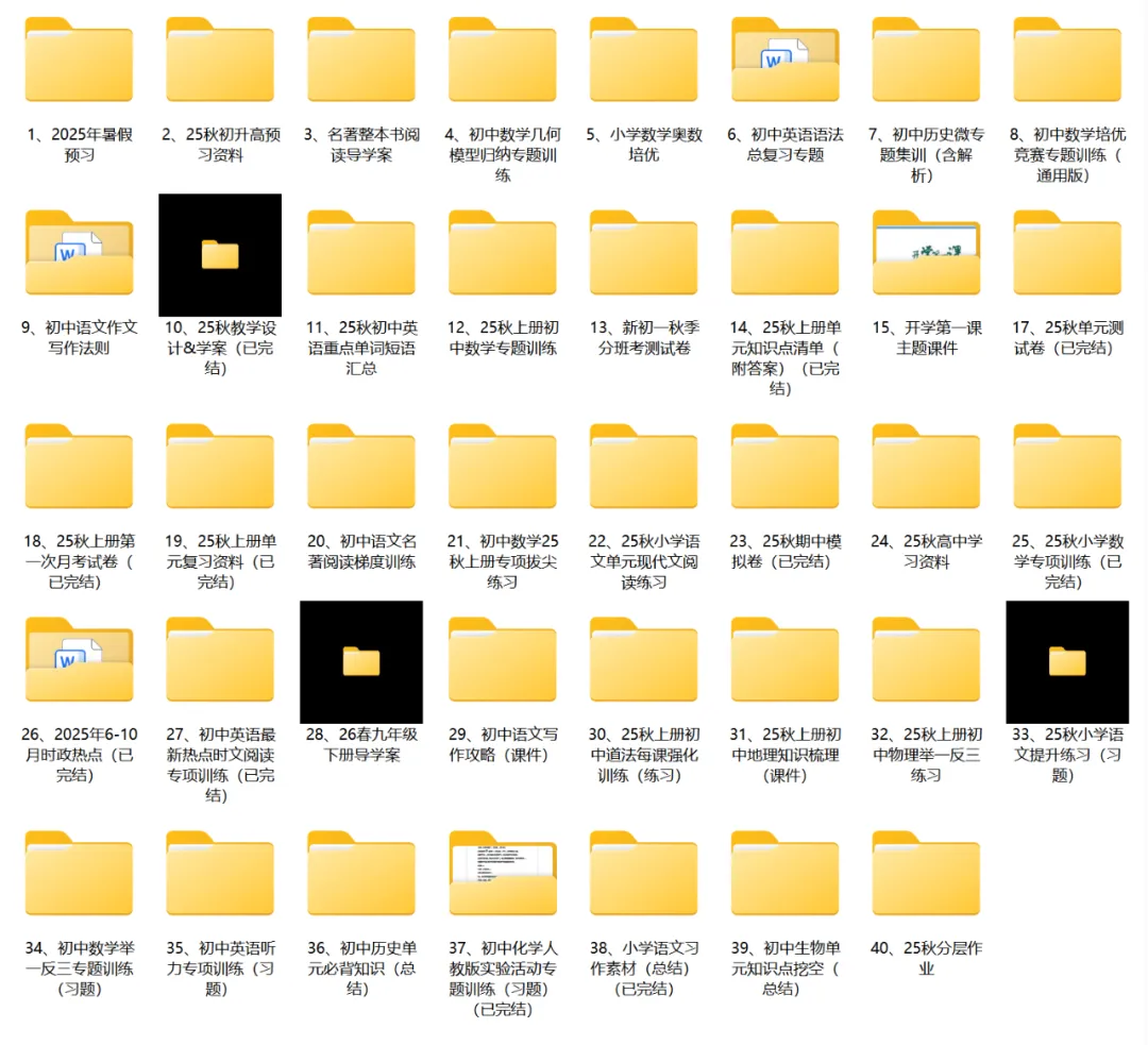 26年中考第一轮复习(专题复习/训练/学案):https://pan.quark.cn/s/ddb6e413f50425秋上册期末复习资料(习题):https://pan.quark.cn/s/9ae2bed3032825秋上册分层作业(习题):https://pan.quark.cn/s/3a491e33ece5初中英语听力专项训练(习题):https://pan.quark.cn/s/d4dc6771d0c62025年全国中考真题(试卷):https://pan.quark.cn/s/d85b296e31cd25秋教学设计&学案(教案学案):https://pan.quark.cn/s/79f40348aa0325秋上册单元知识点总结(复习):https://pan.quark.cn/s/b6cd64d4316425秋单元测试卷(试卷):https://pan.quark.cn/s/11f33b68724d25秋单元复习(课件):https://pan.quark.cn/s/b36c509a12e325秋期中模拟卷(试卷):https://pan.quark.cn/s/b4552739e64c初中语文名著整本书阅读导学案(学案):https://pan.quark.cn/s/2807461e916a初中数学几何模型归纳专题训练(习题):https://pan.quark.cn/s/56b84105fd54初中英语语法总复习专题(习题):https://pan.quark.cn/s/8a71434a724a初中历史微专题集训(习题):https://pan.quark.cn/s/bb27476db512初中数学培优竞赛专题训练(习题):https://pan.quark.cn/s/8ed20392fe11初中语文作文写作法则(课件):https://pan.quark.cn/s/9f36d3d4668c25秋上册初中英语重点单词短语汇总(复习):https://pan.quark.cn/s/e7676411583825秋上册初中数学专题训练(习题):https://pan.quark.cn/s/14dc256d8e65初中语文名著阅读梯度训练(习题):https://pan.quark.cn/s/da858f203b85初中数学专项拔尖练习(习题):https://pan.quark.cn/s/66def39a4ebc初中英语最新热点时文阅读专项训练(习题):https://pan.quark.cn/s/24bb87bacdcb26春下册9年级导学案(学案):https://pan.quark.cn/s/053efb51c859初中语文写作攻略(课件&教案):https://pan.quark.cn/s/2cf10892fbf5初中道法每课强化训练(习题):https://pan.quark.cn/s/c981aaa614de人教版初中地理知识梳理(课件):https://pan.quark.cn/s/4635d61e7dee人教版初中物理举一反三练习(习题):https://pan.quark.cn/s/0823488b0bfc初中历史单元必背知识(总结):https://pan.quark.cn/s/5449badb63d4初中化学实验活动训练(习题):https://pan.quark.cn/s/e1180ca26111初中生物单元知识点挖空(总结):https://pan.quark.cn/s/49e64306ba8f 25秋小学语文单元现代文阅读练习(习题):https://pan.quark.cn/s/cf07f304eaa925秋小学语文提升训练(习题):https://pan.quark.cn/s/871007616c3d25秋小学语文习作素材(习题):https://pan.quark.cn/s/b2023d66f5bb25秋小学数学奥数培优(习题):https://pan.quark.cn/s/d8de1c38b6ac25秋小学数学专项训练(习题):https://pan.quark.cn/s/ea7d4a8efe3f下载方法