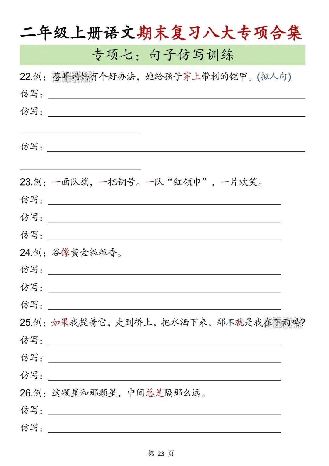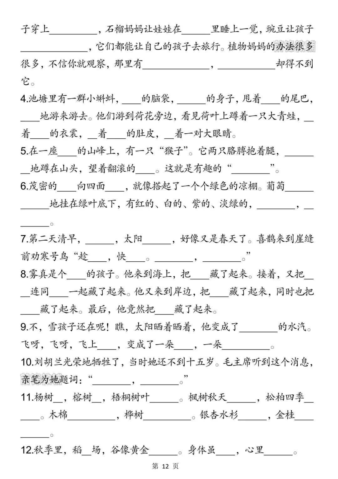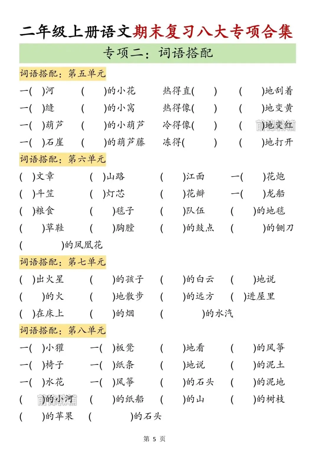 五年级上册语文期末词句段专项训练题,期末复习好资料!