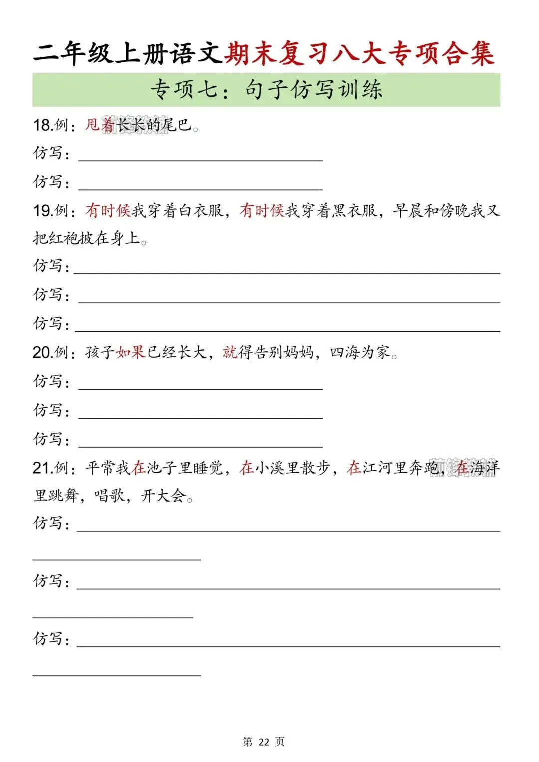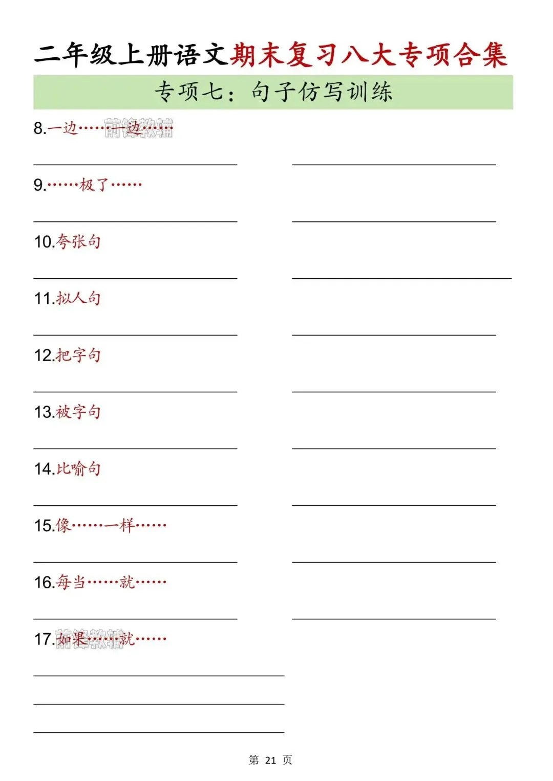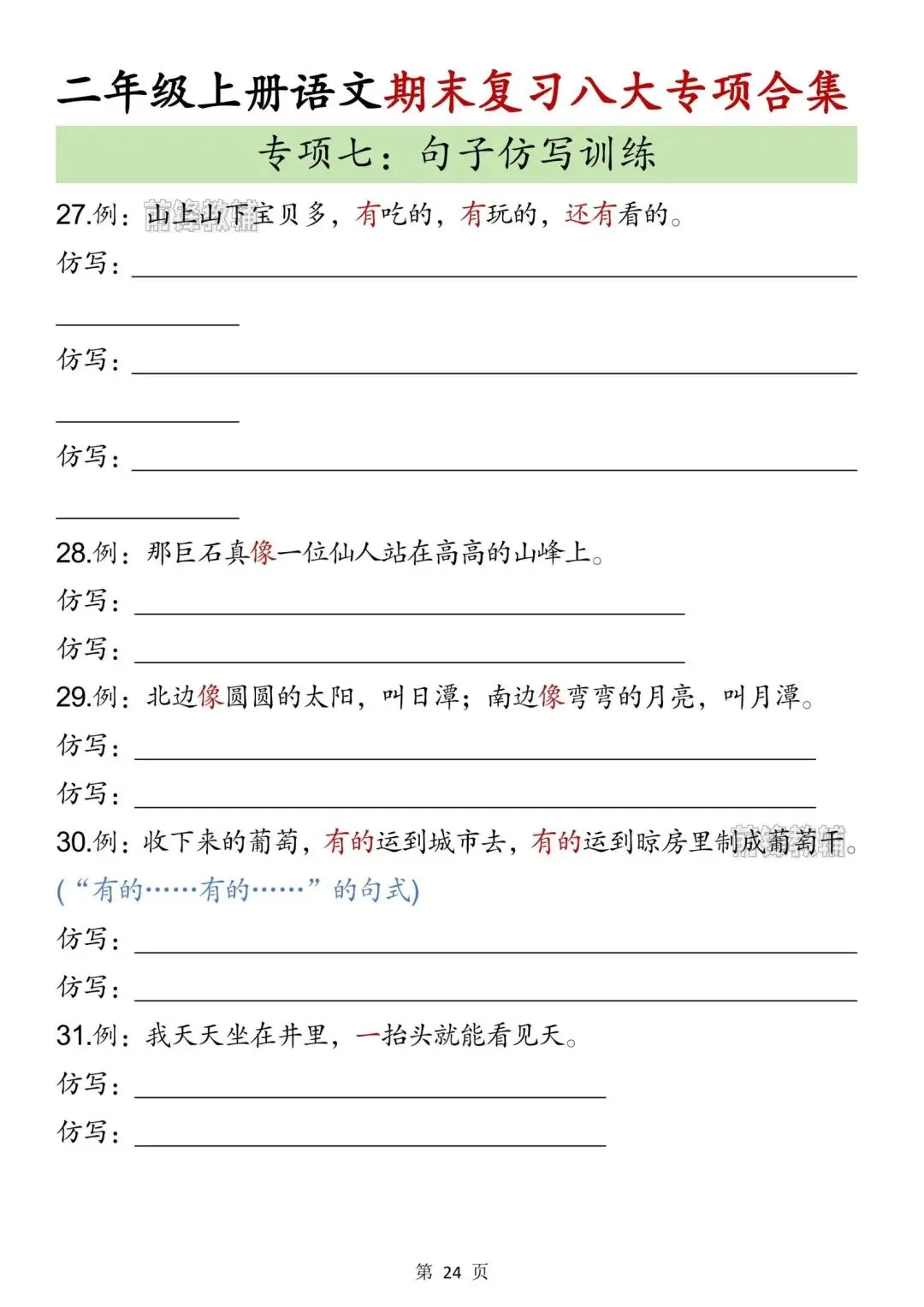 五年级上册语文期末词句段专项训练题,期末复习好资料!