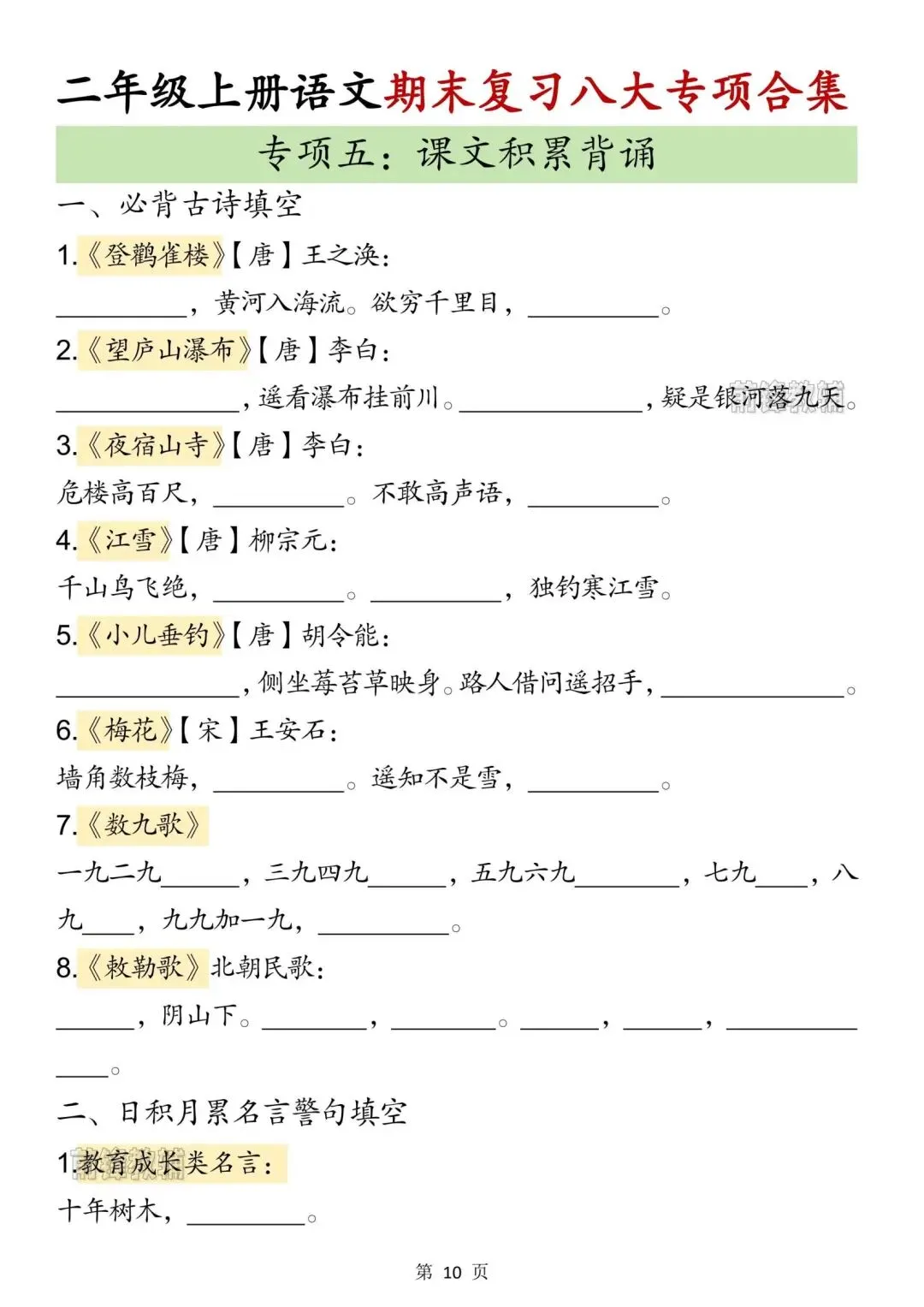 1-8单元重点必练,涵盖日积月累、古诗填空、课文内容理解、句式变换、词语运用等核心考点,从基础积累到题型练习一网打尽