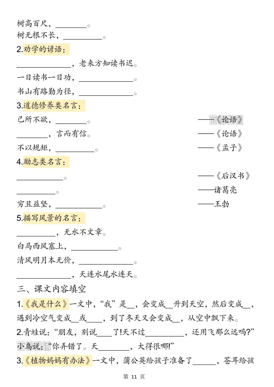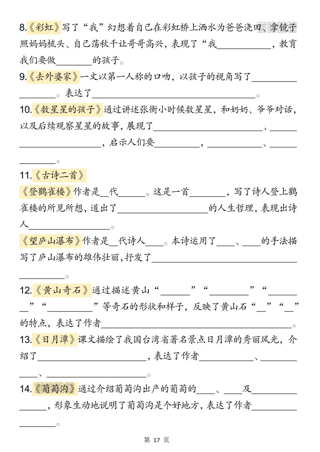 >25新版三年级上册语文期末总复习,重点全在这!有答案,电子版可打印