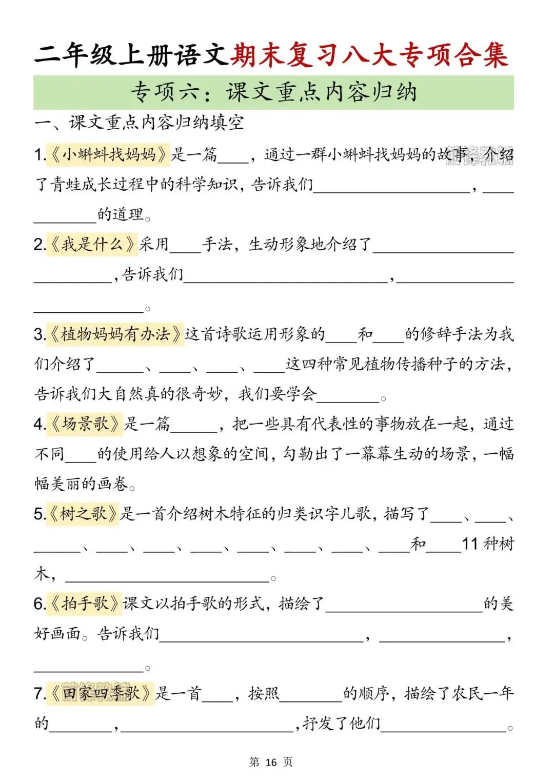 六年级语文上册期末复习重点,查漏补缺好资料!