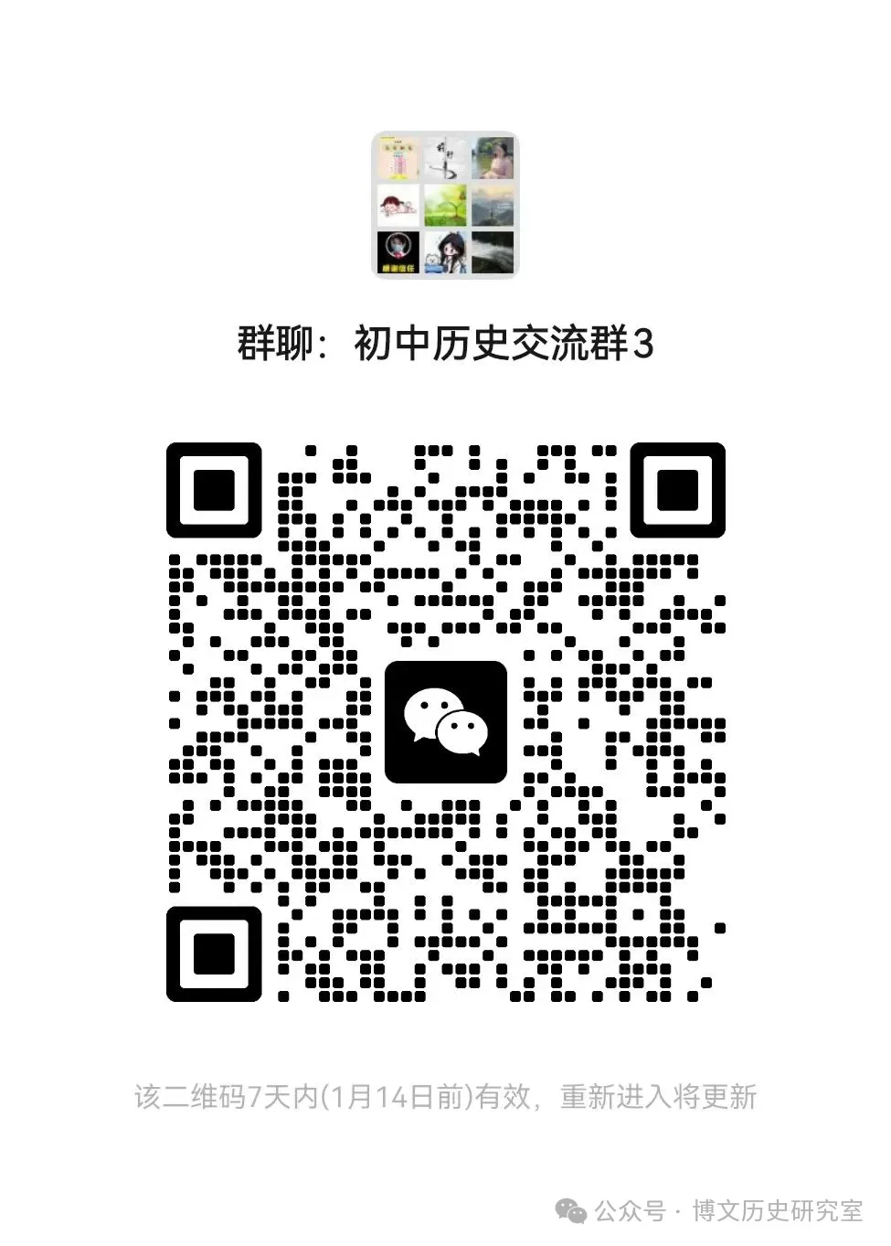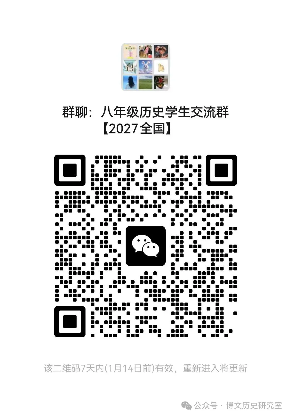 以下属于全国学生家长群和老师交流群,需要的扫码进入微信群,同时欢迎全国老师和家长加入博文历史研究室长期会员群,长期会员可分享近300G初中历史资料,实时更新,内容精品优质,长期会员价格298元。