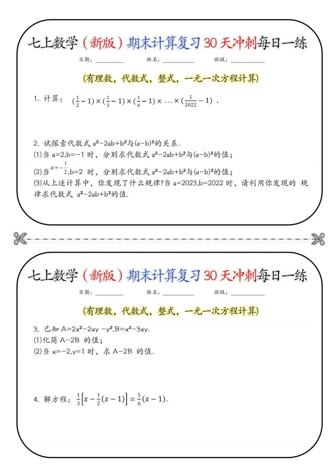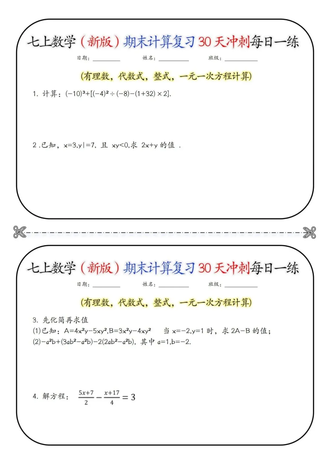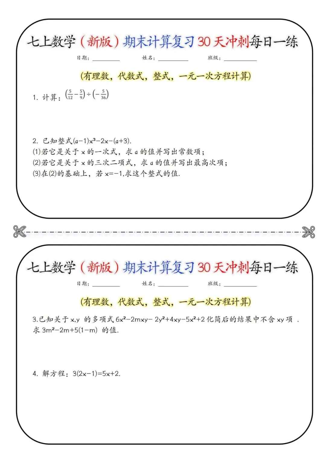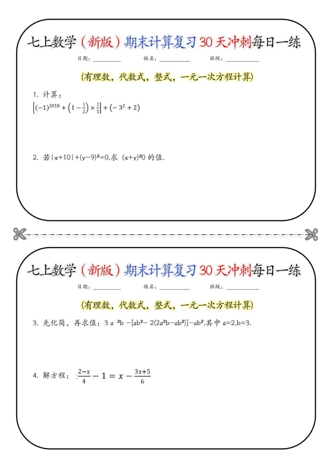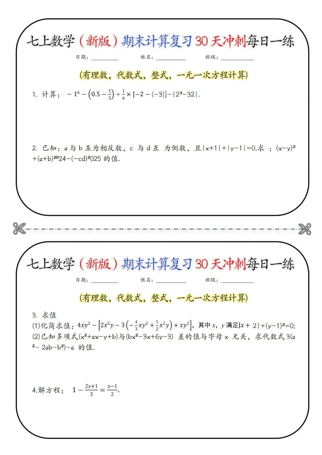 🧮🚀25 秋七年级上册数学期末救星来啦!30 天计算冲刺每日一练,含详细答案💯 有理数运算、整式加减、解方程、混合计算… 全是期末高频计算题型!每天 1 页题,题量精准不费娃,做完对照答案自查纠错,攻克计算易错点✅ 告别盲目刷题,稳抓基础分,数学期末冲刺超有底气!家有七年级娃的快码住❗ 30 天练出计算硬实力,考试少丢分~# 七年级数学 #期末计算冲刺 #初中数学复习