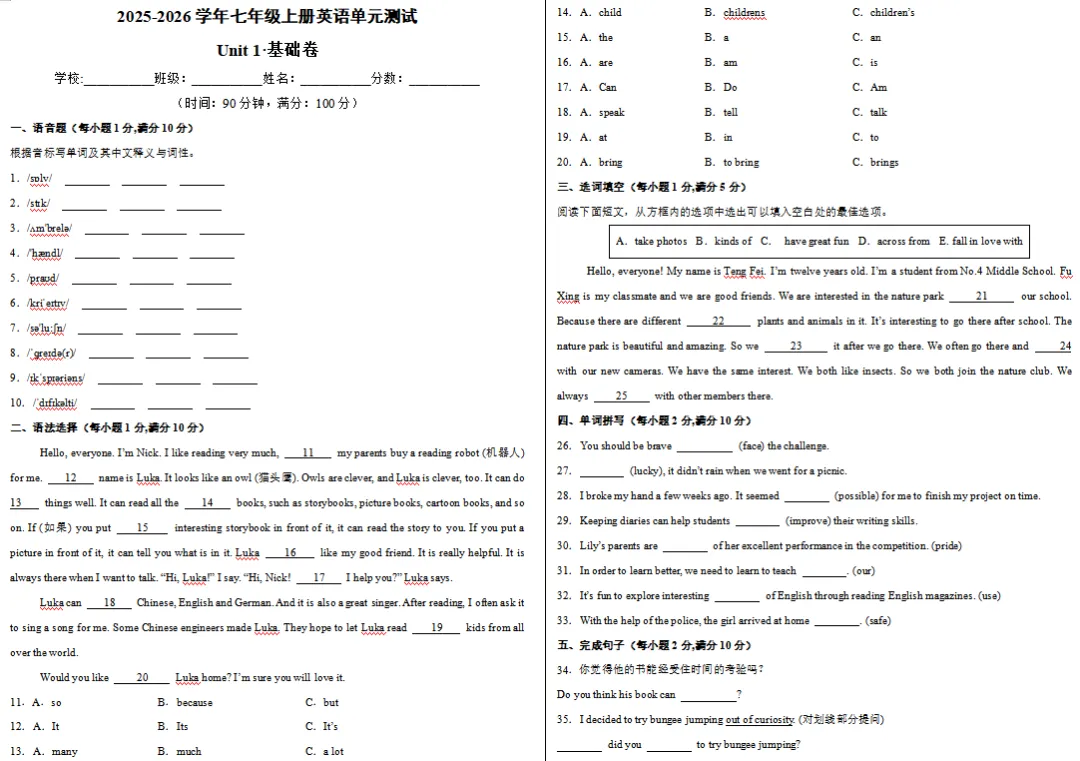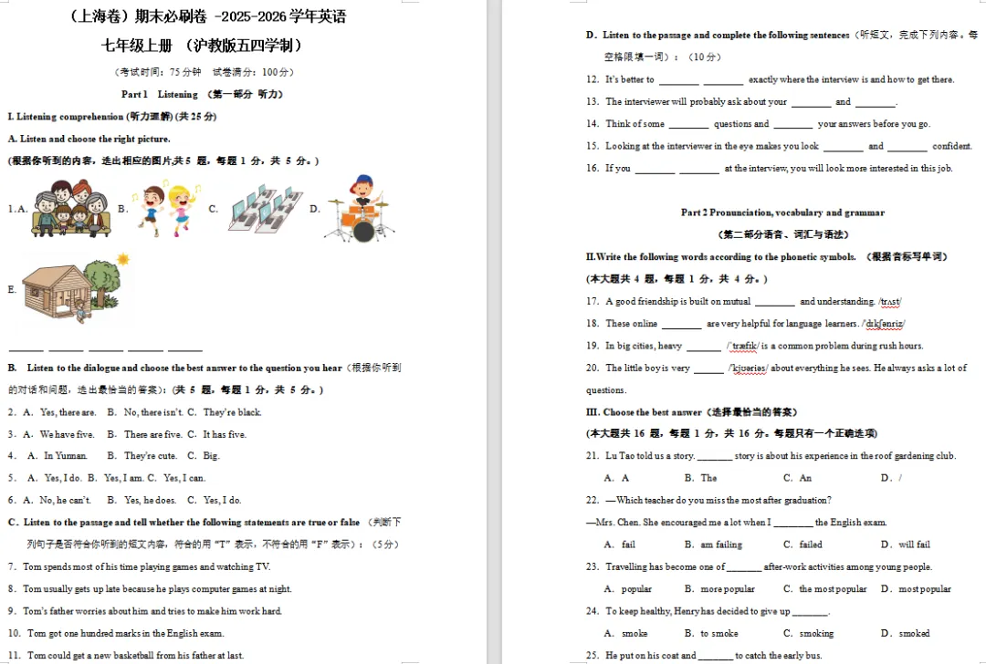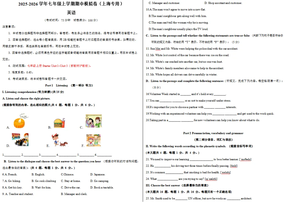 >【复习资料】2026沪教版初中七年级英语上册(复习课件+单元检测+知识清单+期中测试 +期末测试)全套下载
