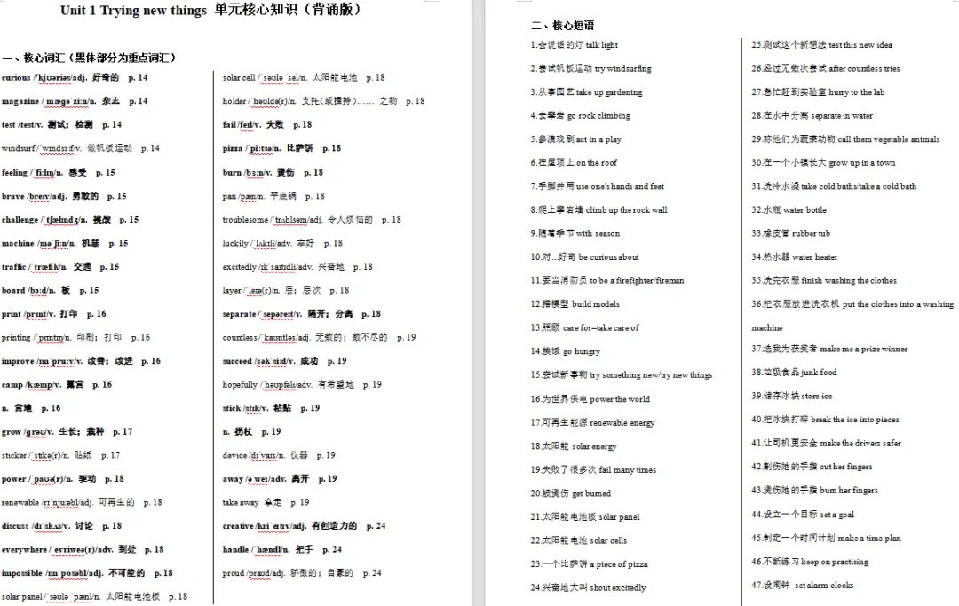 必修上册教材期末复习资料只之——书下注释回扣精选精编(记忆版)
