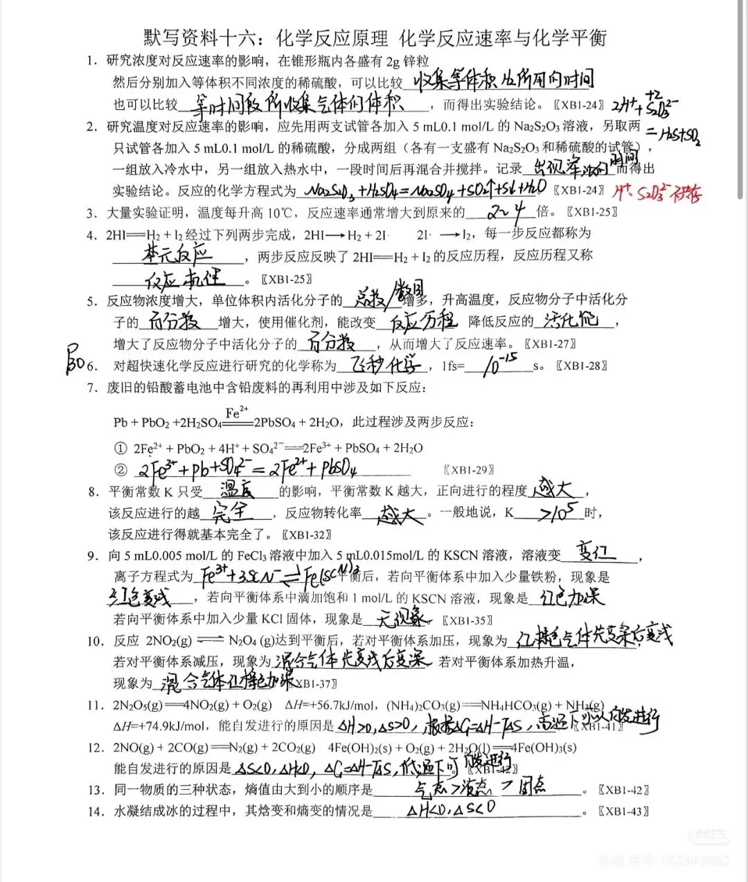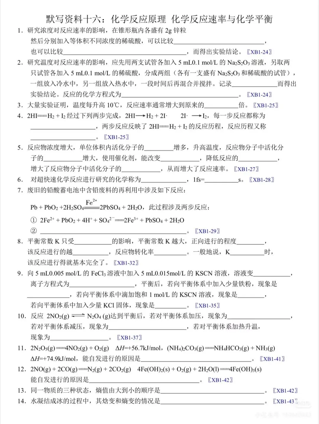 109. 期末复习||默写资料「选必一 热效应」