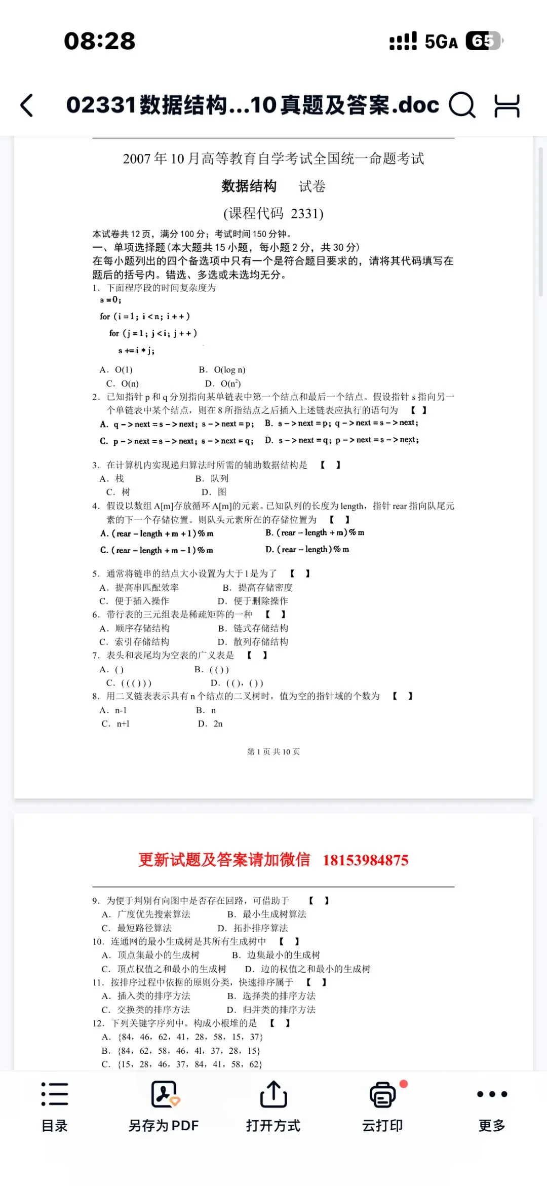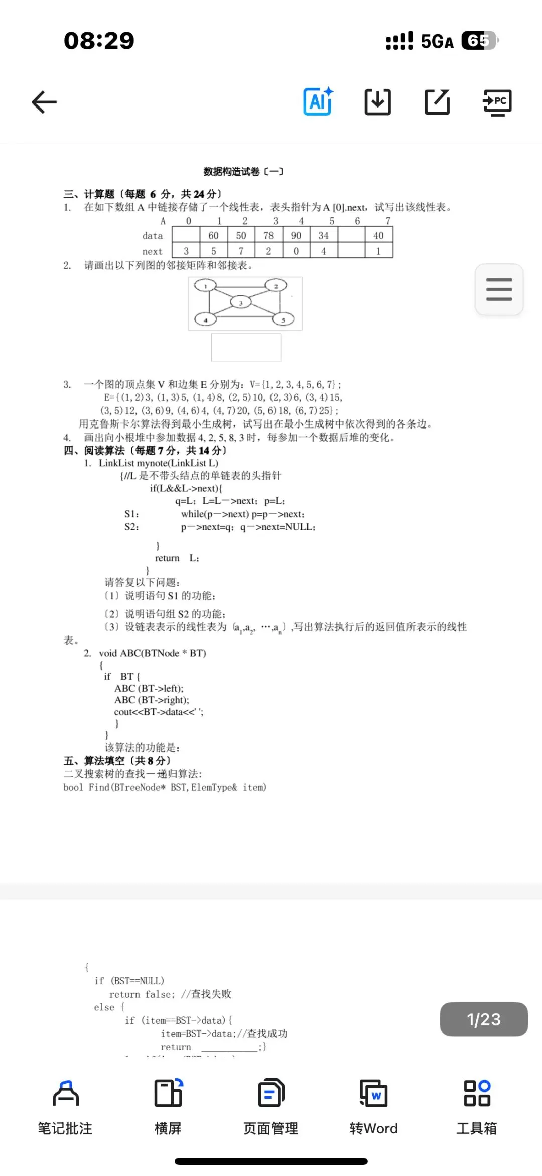 大学数据结构期末考试复习资料合集,包含知识点总结、习题题库、真题答案、复习要点等,内容丰富,适合期末备考!资料为PDF电子版,手机电脑都能用,随时随地学习!