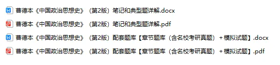 以上就是关于专业课曹德本《中国政治思想史》第2版重点笔记总结知识点整理+考研真题解析+配套题库及答案考试重点考点PDF电子版的复习资料展示了。