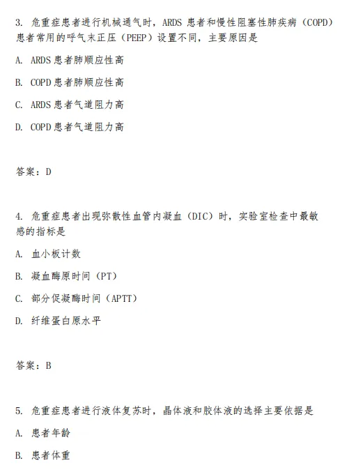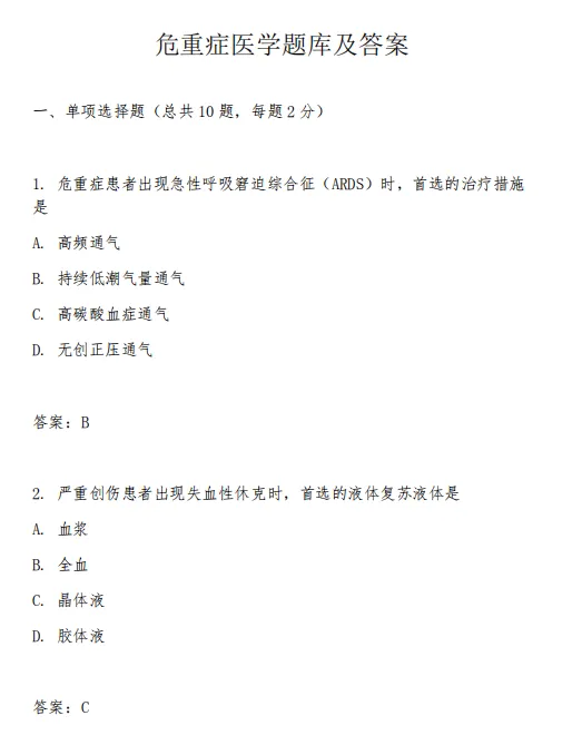 Hi,各位同学们,大家好,今天三木给大家带来的是专业课《危重症医学》相关的复习资料,正在备考复习这门课的同学刷到此文应当好好看看。《危重症医学》这套资料涵盖面广,不管是大学期末考试、考研,还是专升本及自考都是适用的哦!可以帮助大家在复习备考时节省时间,少走很多弯路,突击攻克精华知识点,面对考试时才会更加了然于胸。