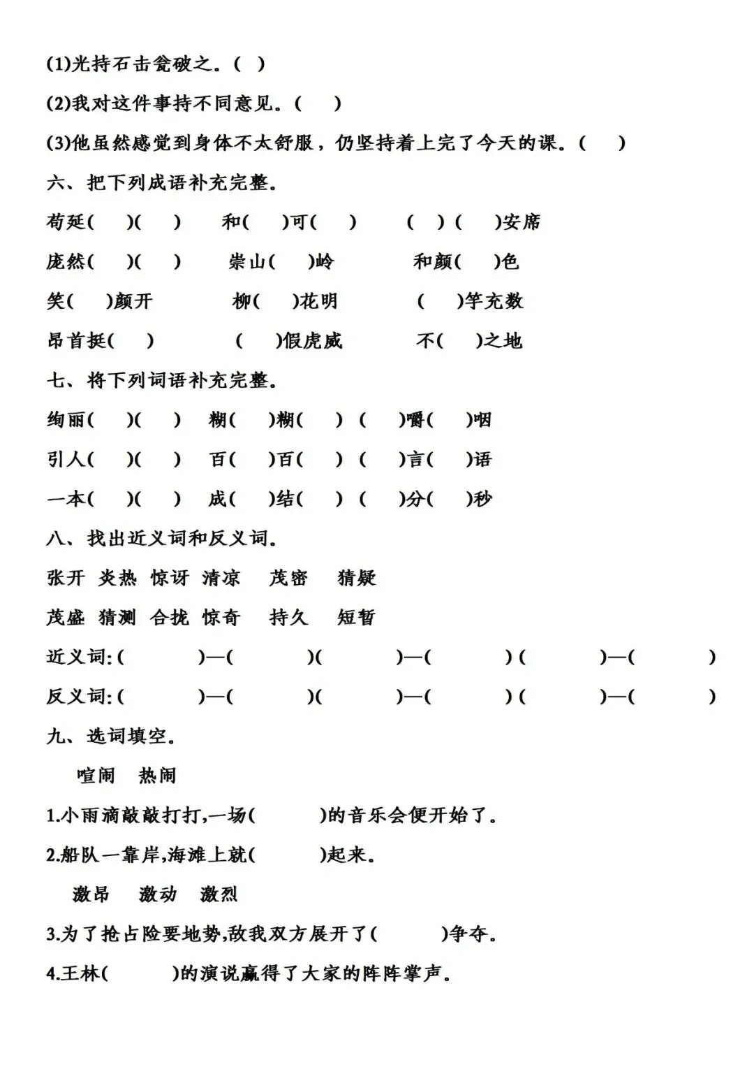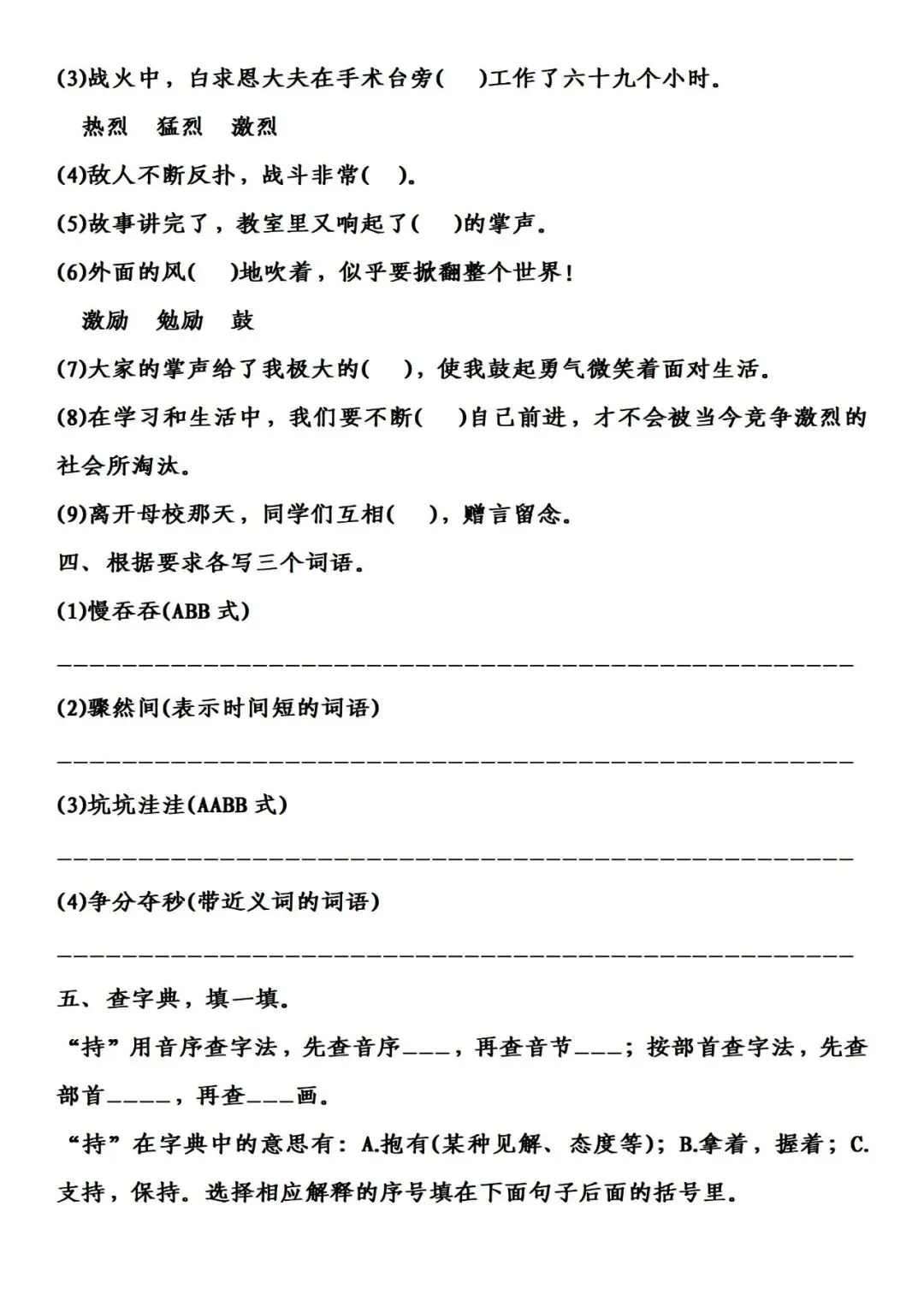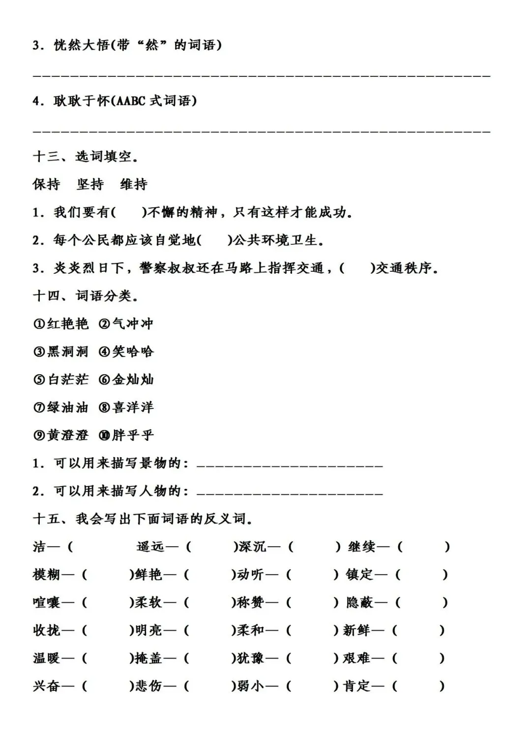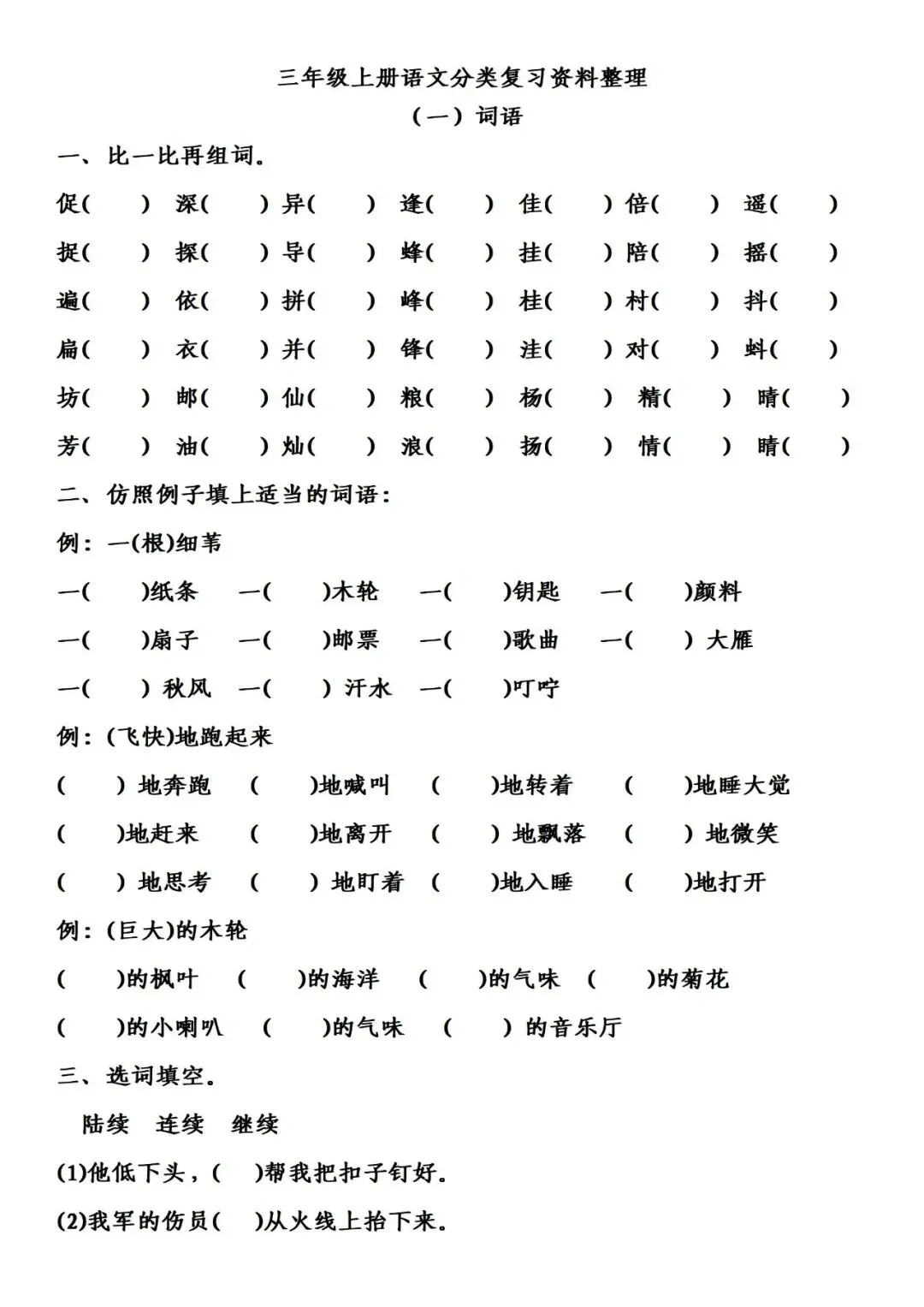 >三年级上册语文分类复习资料整理1词语专项练习下载