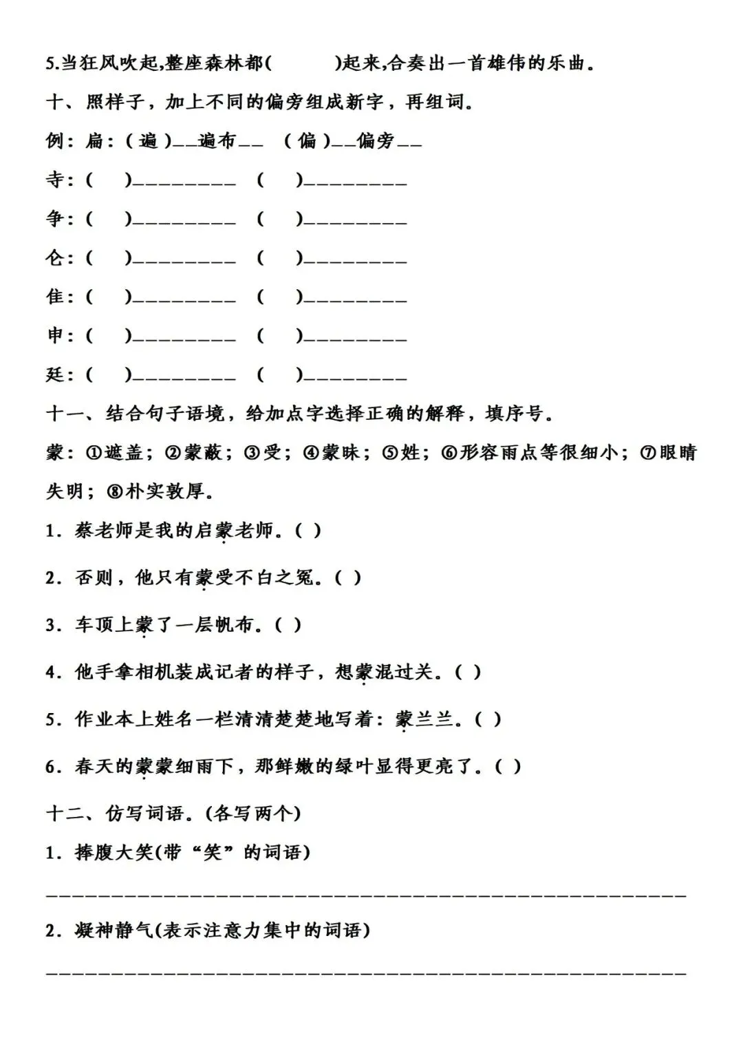 三年级上册语文分类复习资料整理1词语专项练习下载