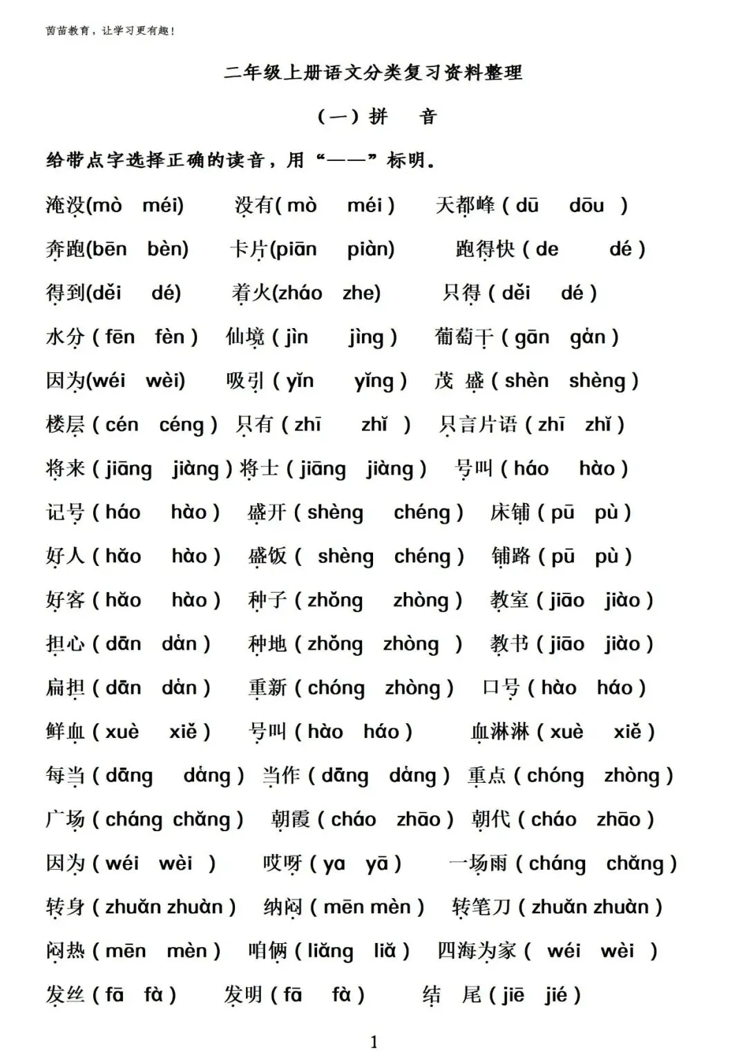 一年级语文上册期末复习重点资料,辅导必备!