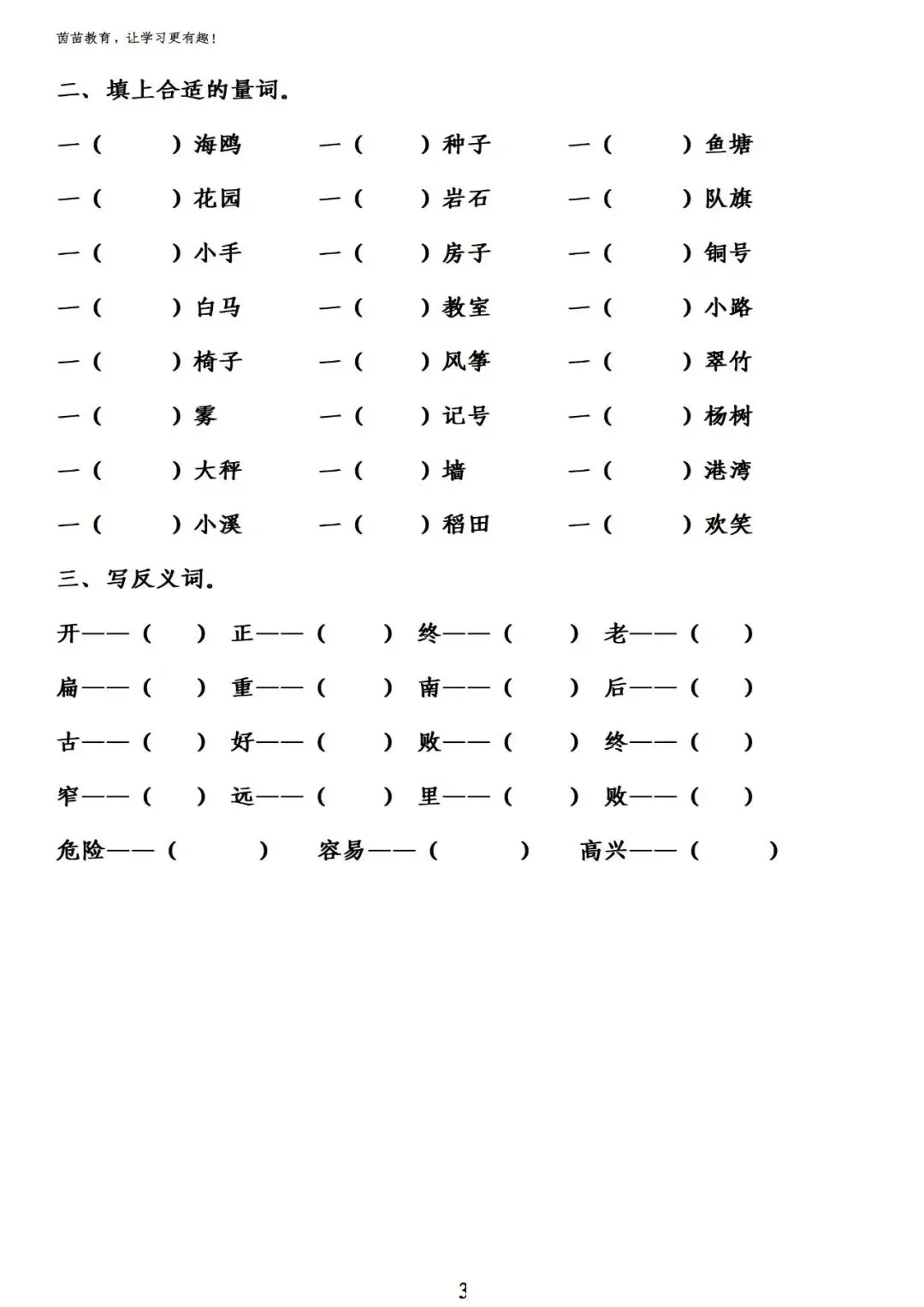 三年级上册语文分类复习资料整理1词语专项练习下载