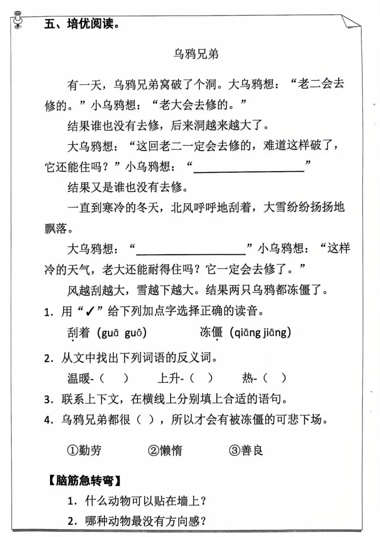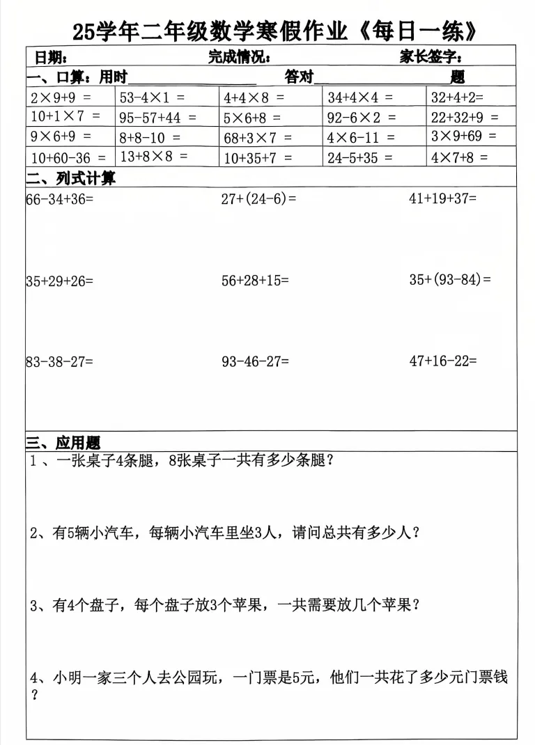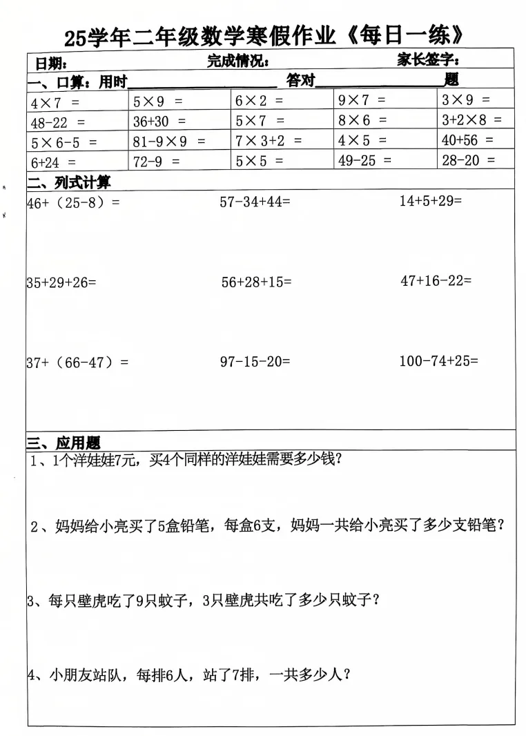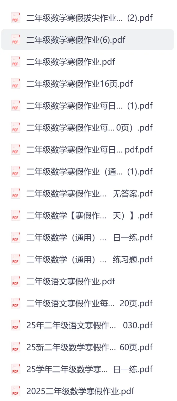 寒假复习资料:二年级上册语数各版本寒假作业资料可下载打印