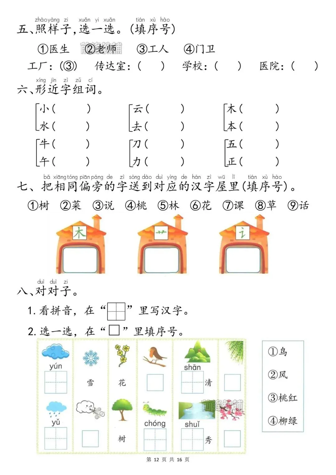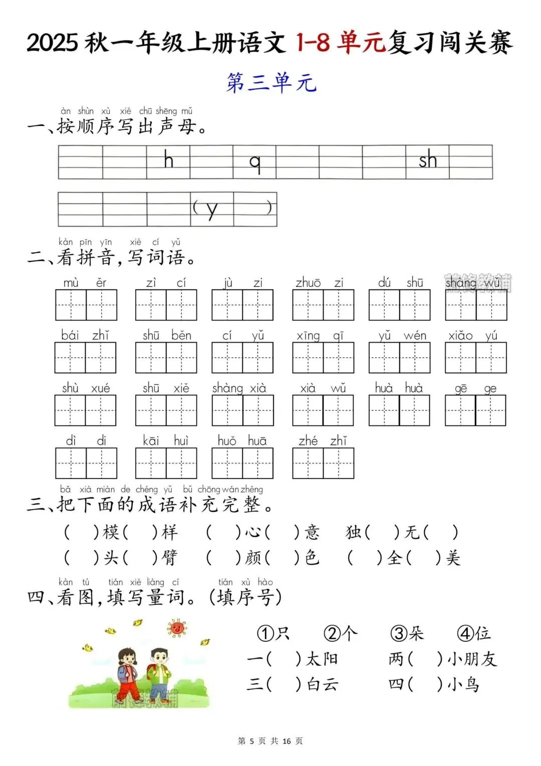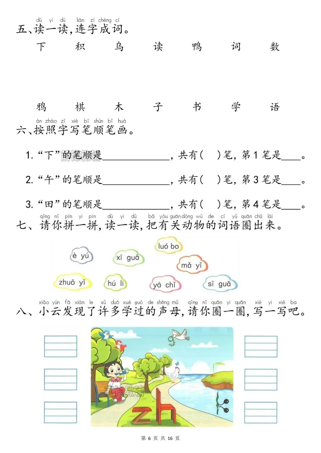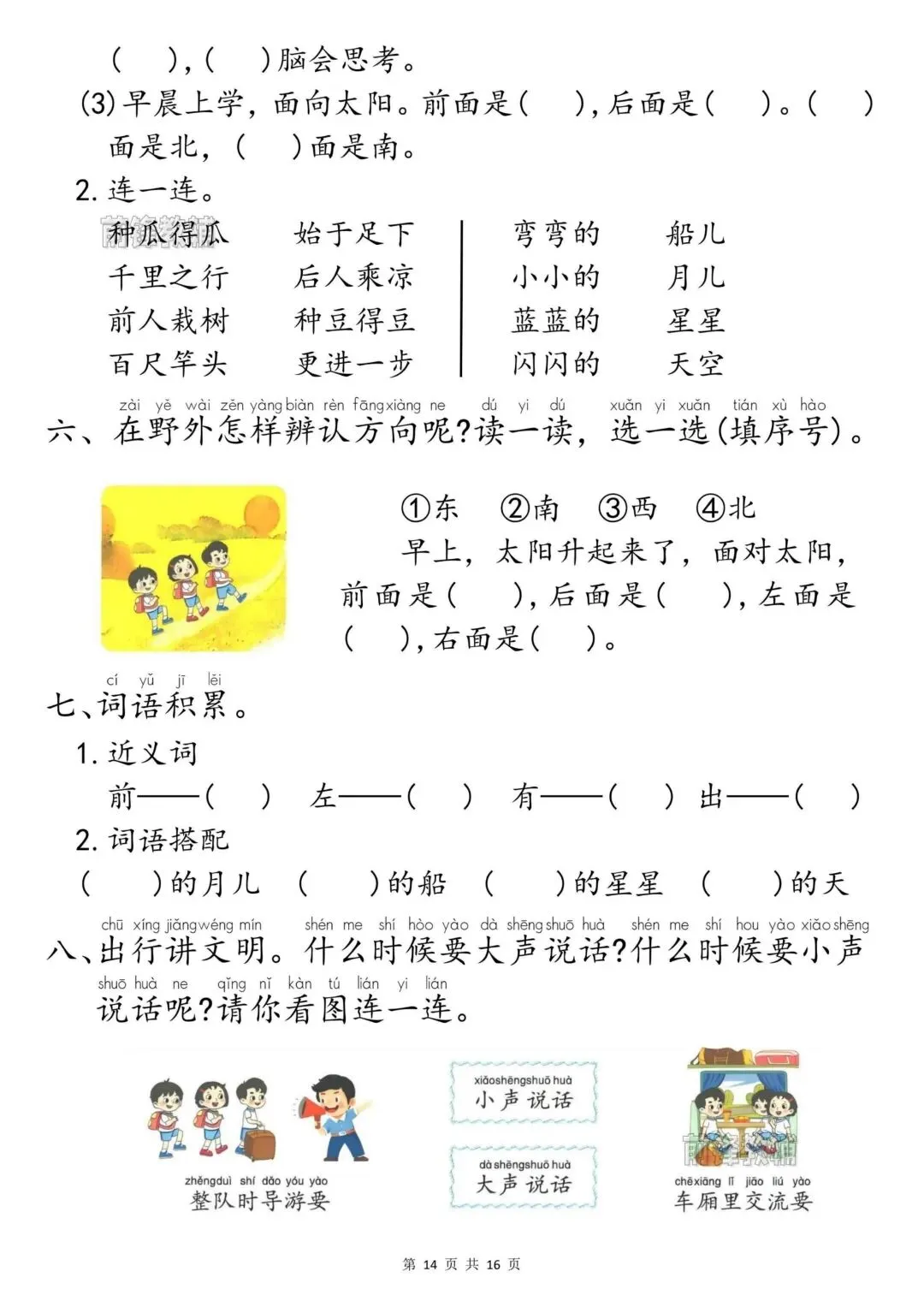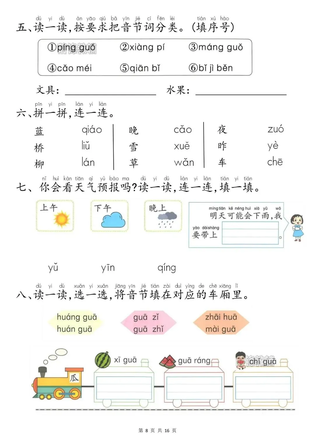 >一年级上册语文1-8单元重点汇总复习资料电子版可打印!