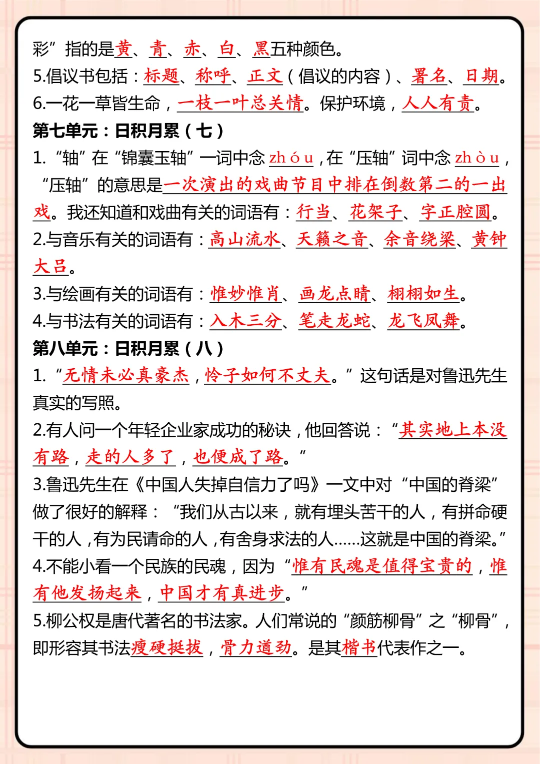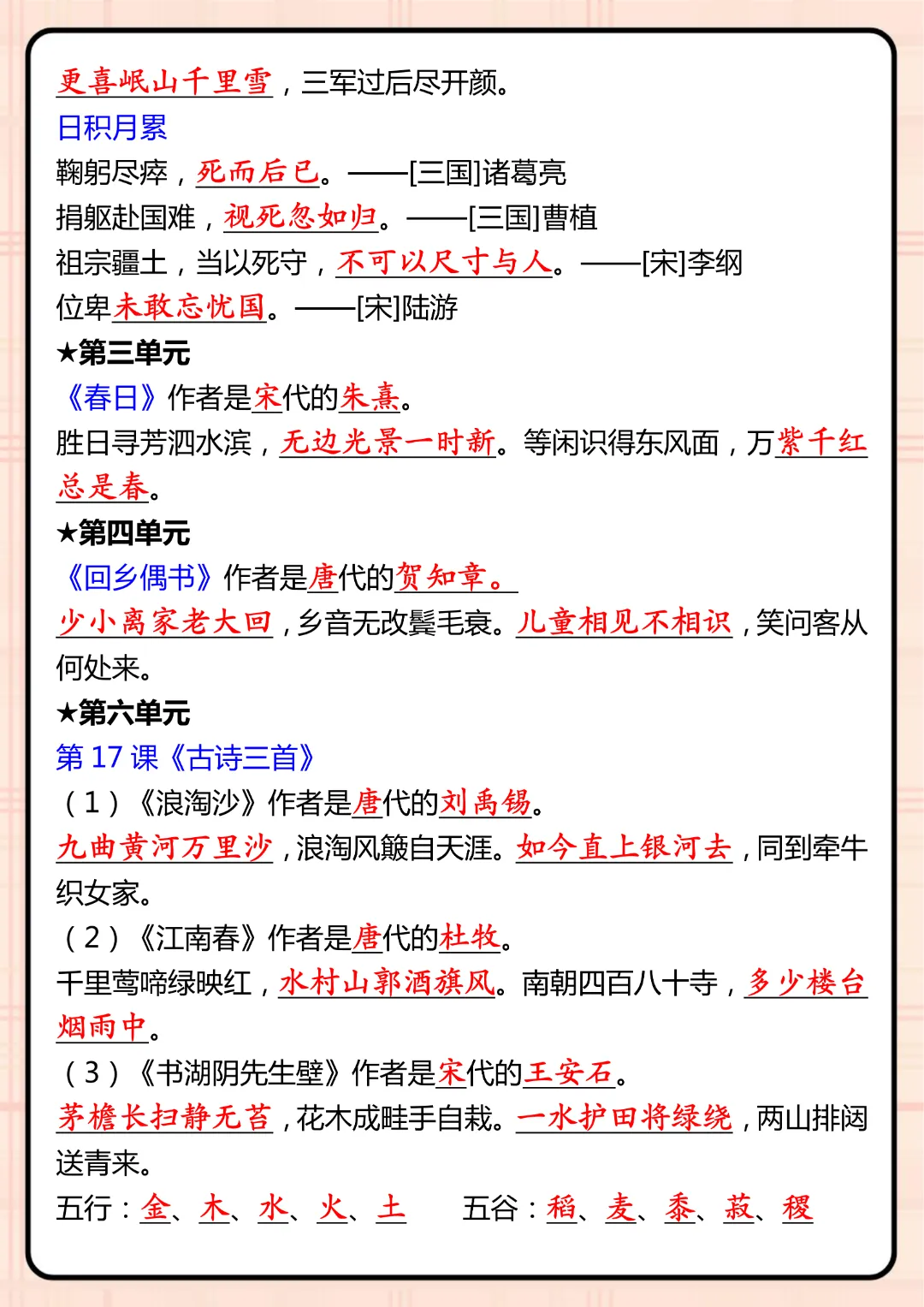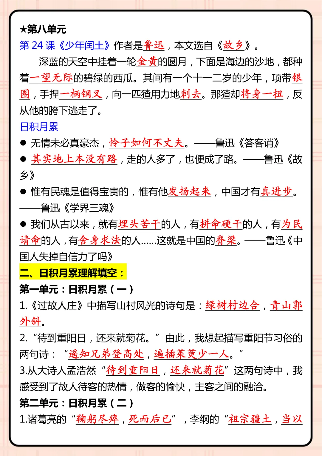 六年级上册语文期末复习重点默写(按课文内容+日积月累)