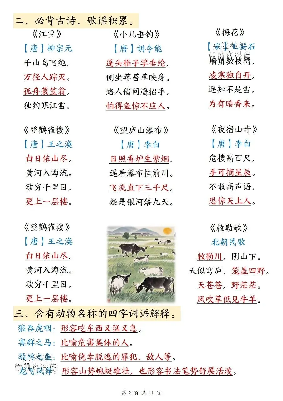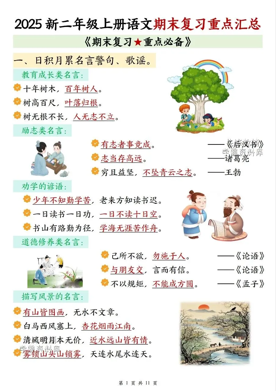 今日分享2025秋《二年级上册语文期末复习重点汇总》电子版可打印