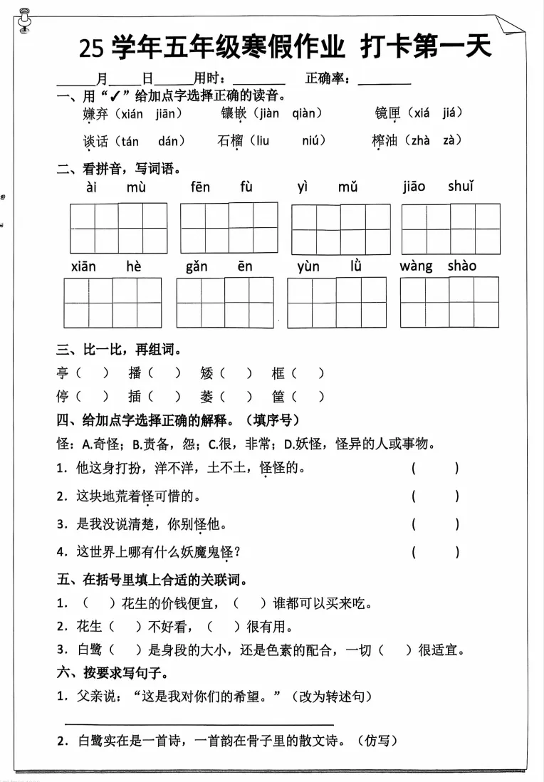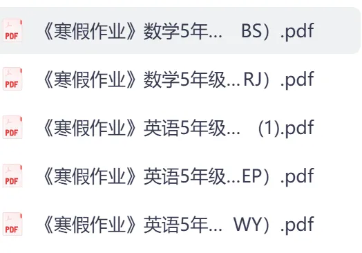 寒假复习资料:五年级上册语数英各版本寒假作业资料可下载打印
