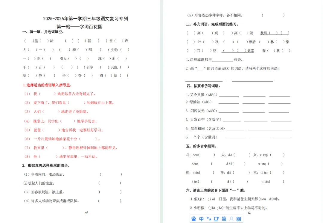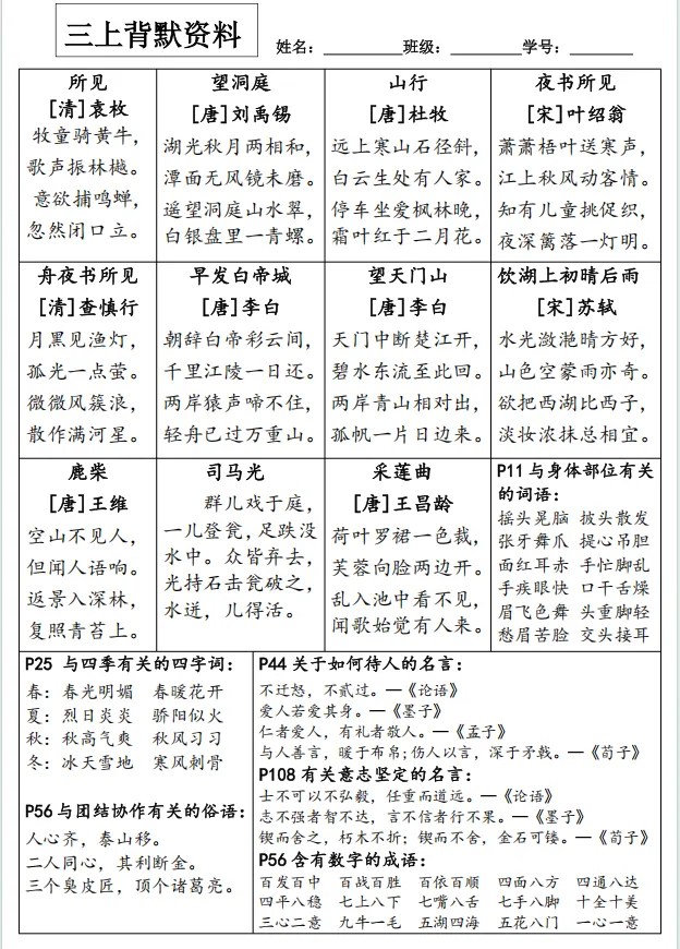 家长收藏!新三年级上册语文期末复习重点知识一遍过42页可打印电子版