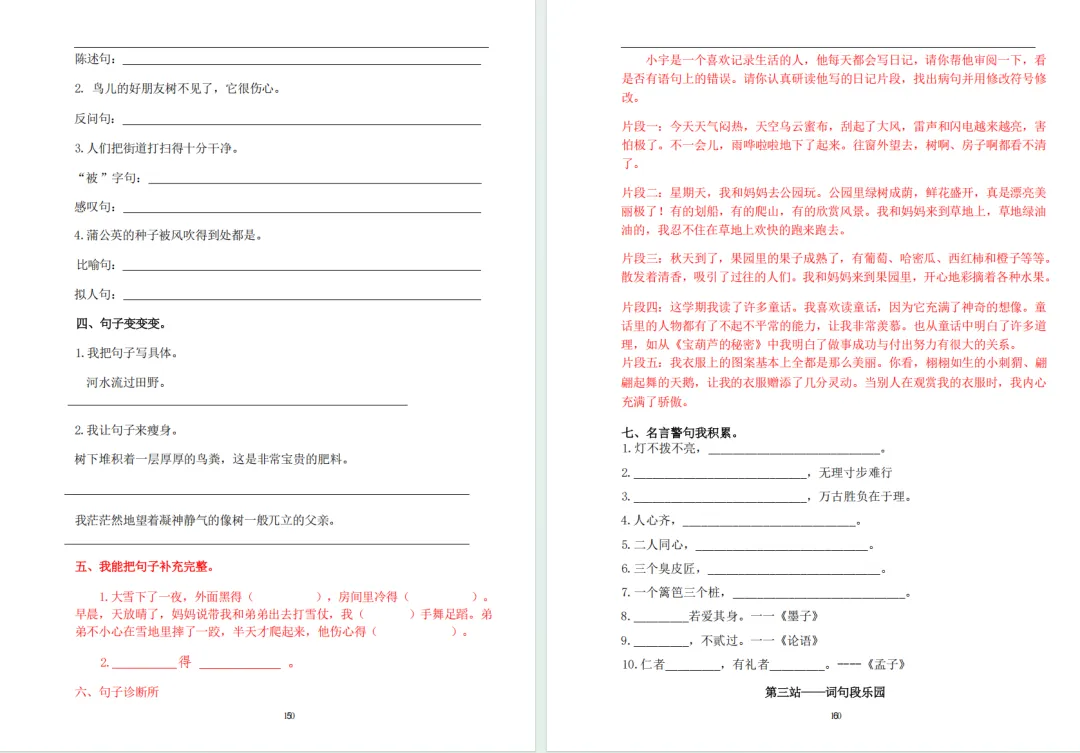 二年级上册语文课内句子仿写,全册汇总,总复习好资料!