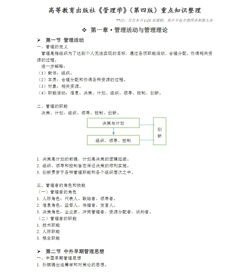 【免费分享】《管理学》期末考试重点笔记+复习重点资料+知识点总结+期末试卷PDF