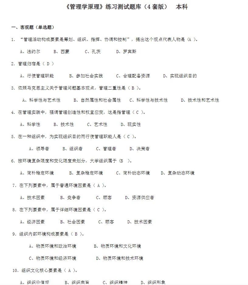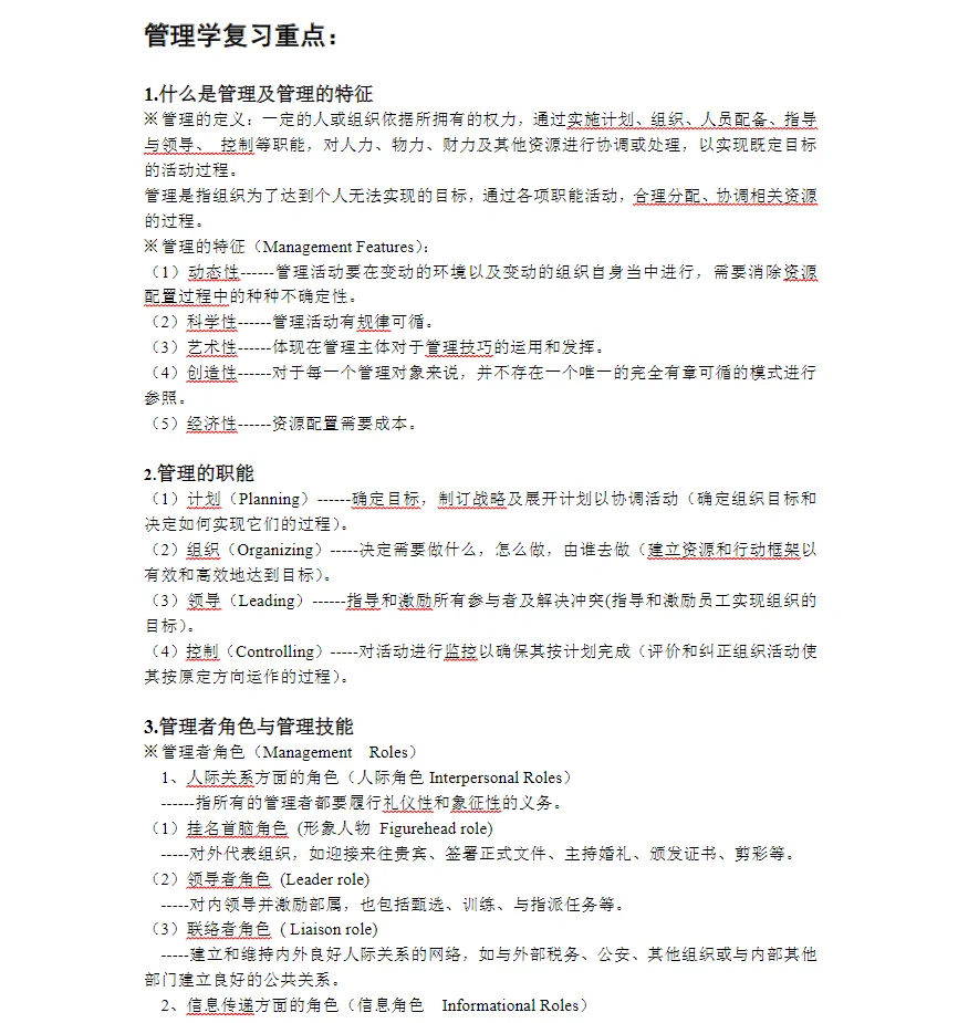 今天给大家分享的是《管理学》期末复习资料,期末考试重点笔记+复习重点资料+知识点总结+期末试卷PDF