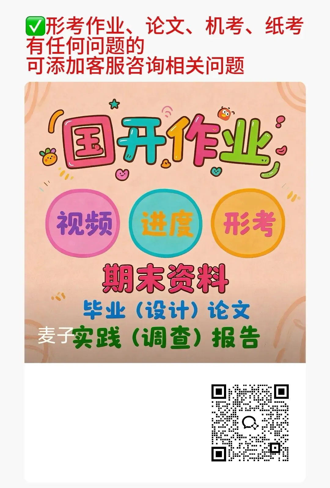 获取更多小抄答案,请关注下方公众号,或者请咨询人工客服~愿每一位国开考生,都能不负努力,顺利通关,拿下证书!✨