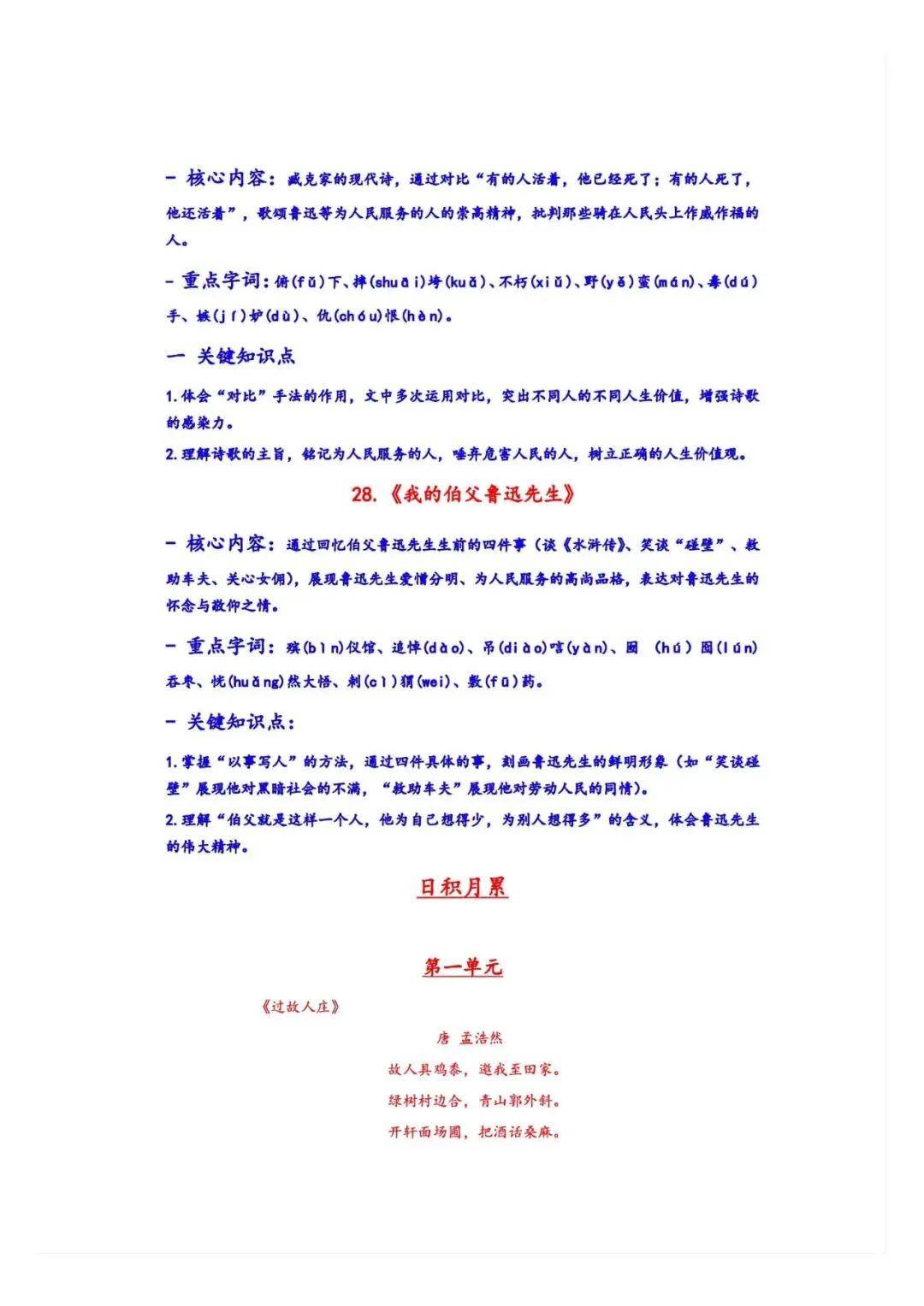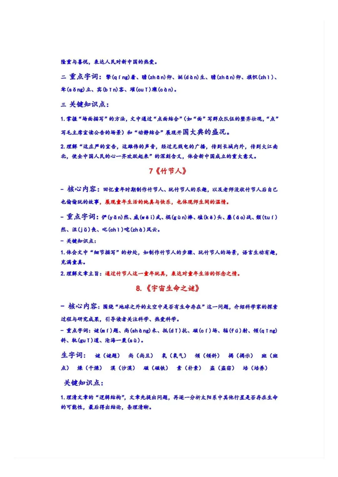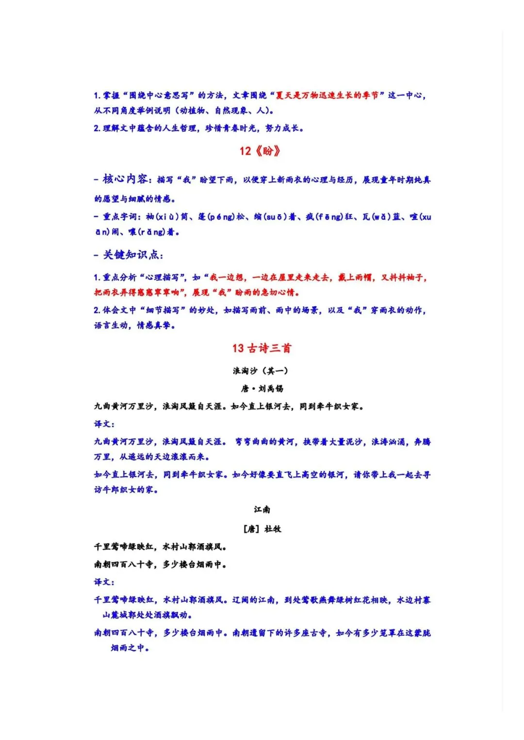 家长必备!新三年级上册语文期末十三考点复习资料 42页可打印PDF