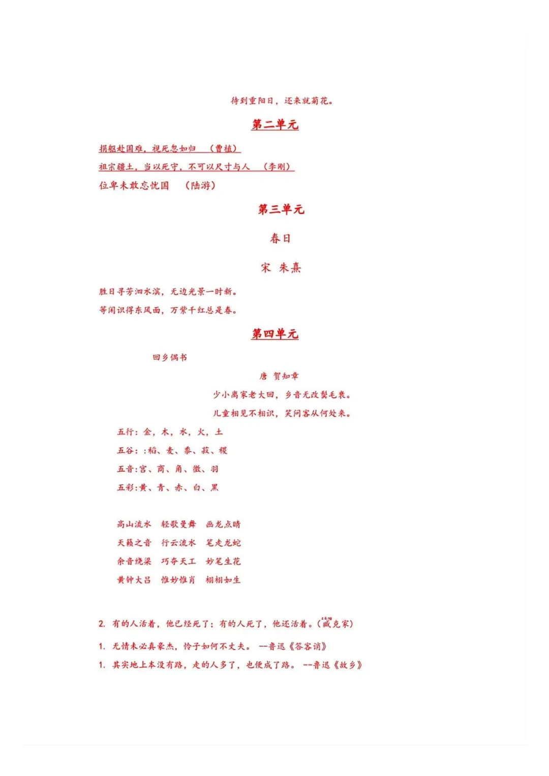 >六年级上册 语文期末复习资料