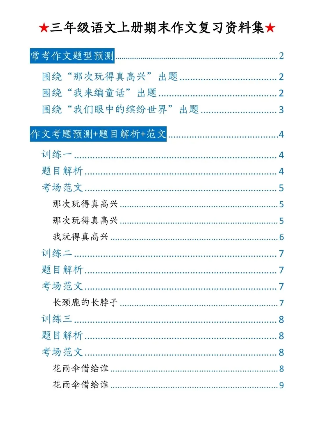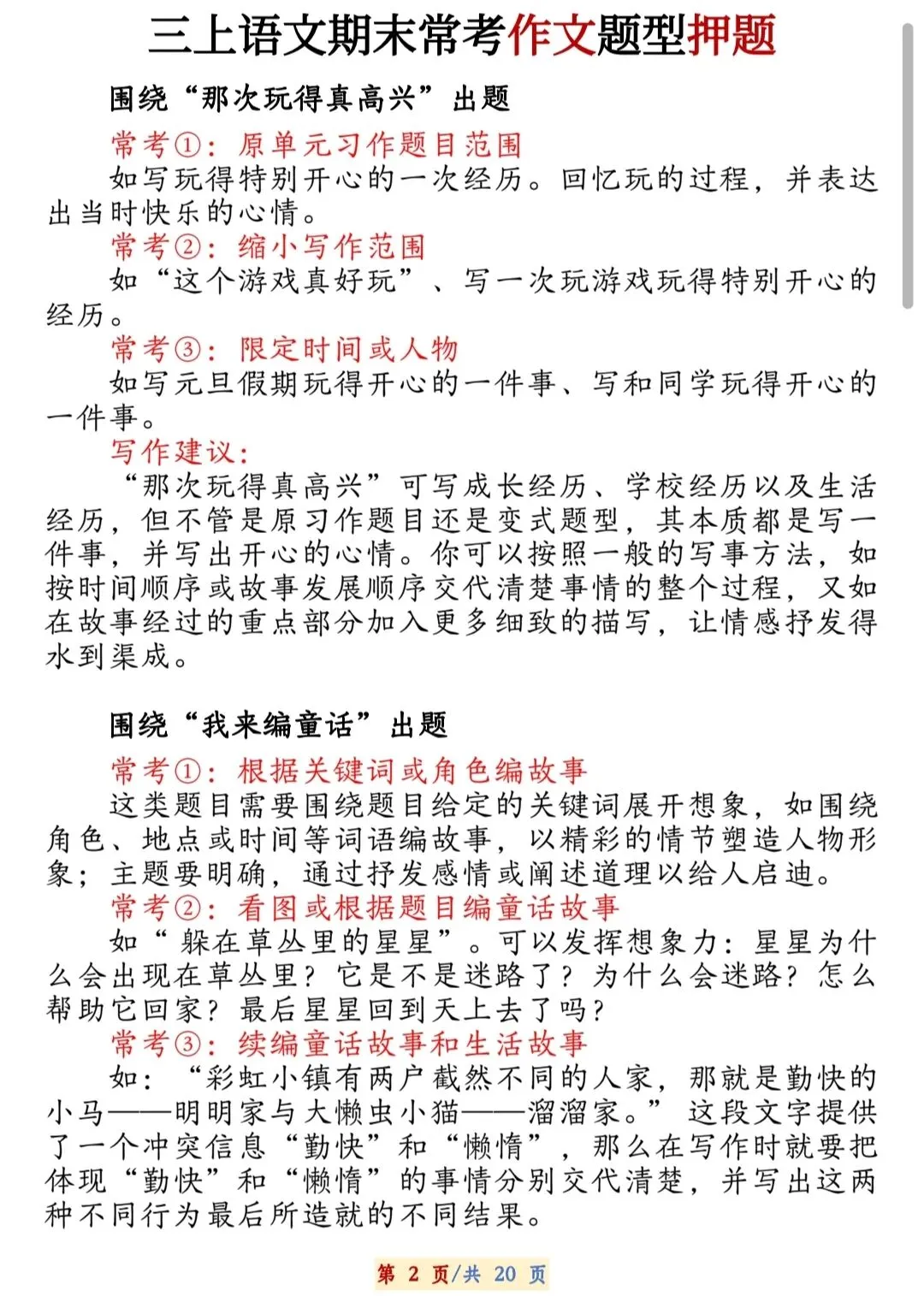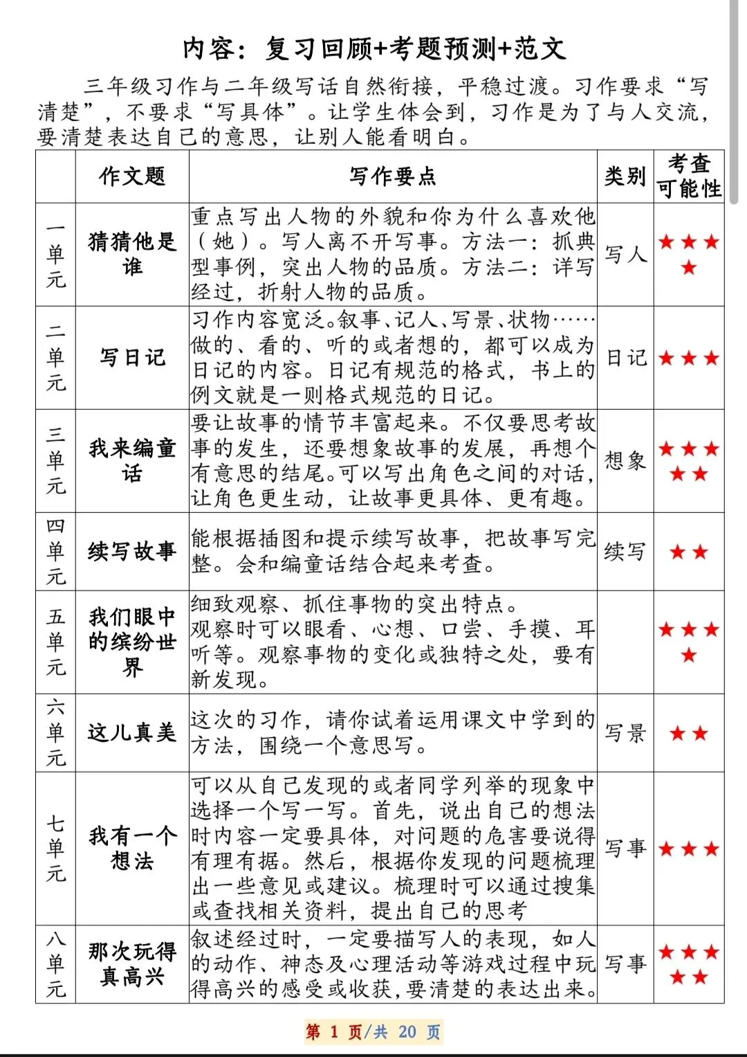 家长必备!新三年级上册语文期末十三考点复习资料 42页可打印PDF