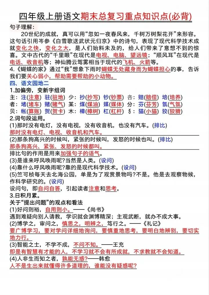 >四年级上册语文期末总复习重点知识必备|抓准核心,复习效率翻倍!