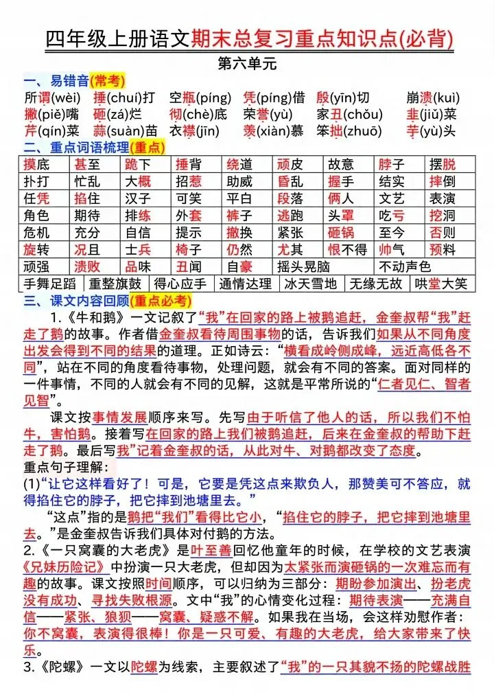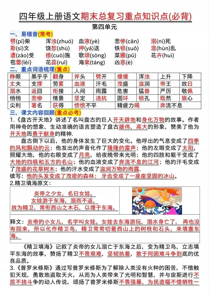 四年级上册语文期末总复习重点知识必备|抓准核心,复习效率翻倍!