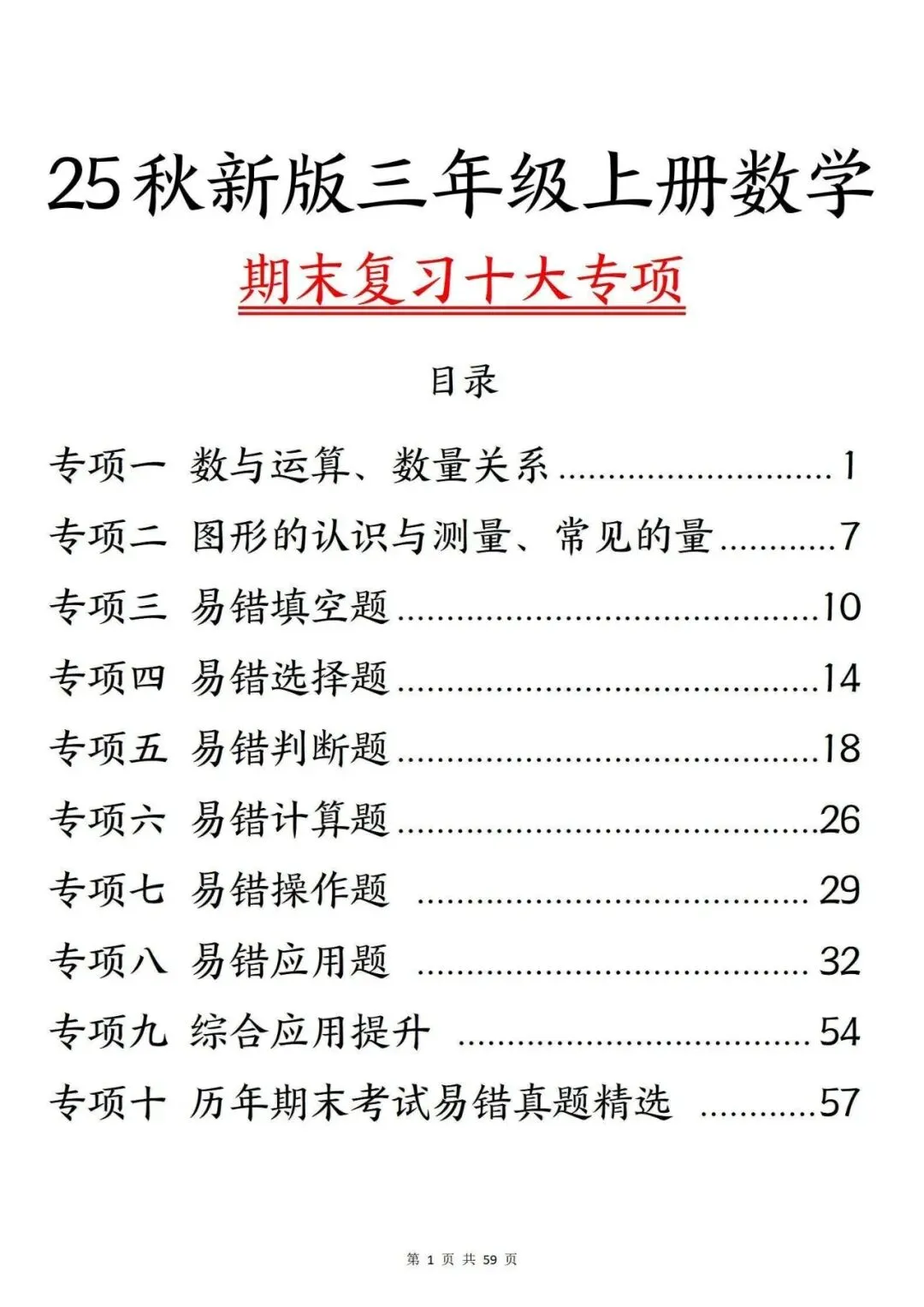 家有三年级娃的宝妈看过来!数学期末知识点又多又杂,孩子总在基础题丢分?😭 挖到宝的 25 秋三年级数学上册《期末复习十大专项练习含答案》必须安利!✅ 十大核心专项全覆盖:计算、应用题、几何图形、单位换算等考点全囊括✅ 紧扣教材重点,题型经典不跑偏,每题都踩中得分点💯✅ 自带详细答案,家长批改不用翻书,省心省力超方便✨每天练一个专项,孩子吃透知识点,期末考高分!冲刺阶段赶紧码住,错过真的亏‼️#三年级数学 #期末复习 #小学数学教辅 #十大专项练习