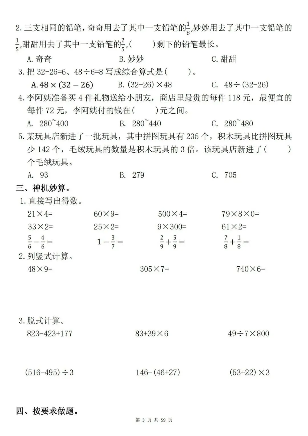 【小学资料】25秋三年级数学上册《期末复习十大专项练习含答案》可下载打印