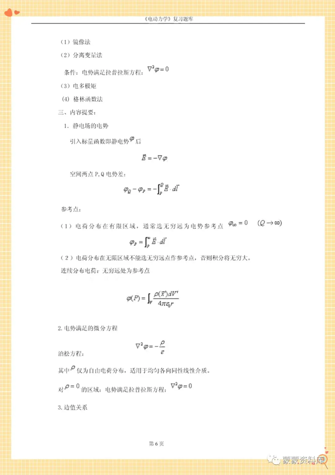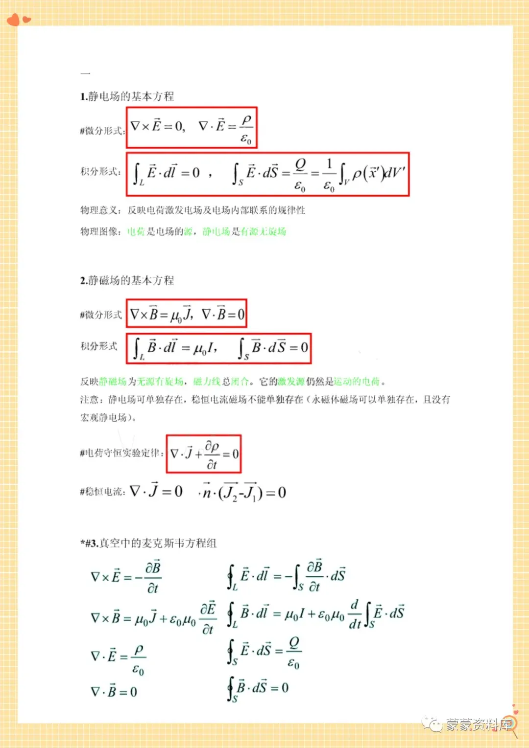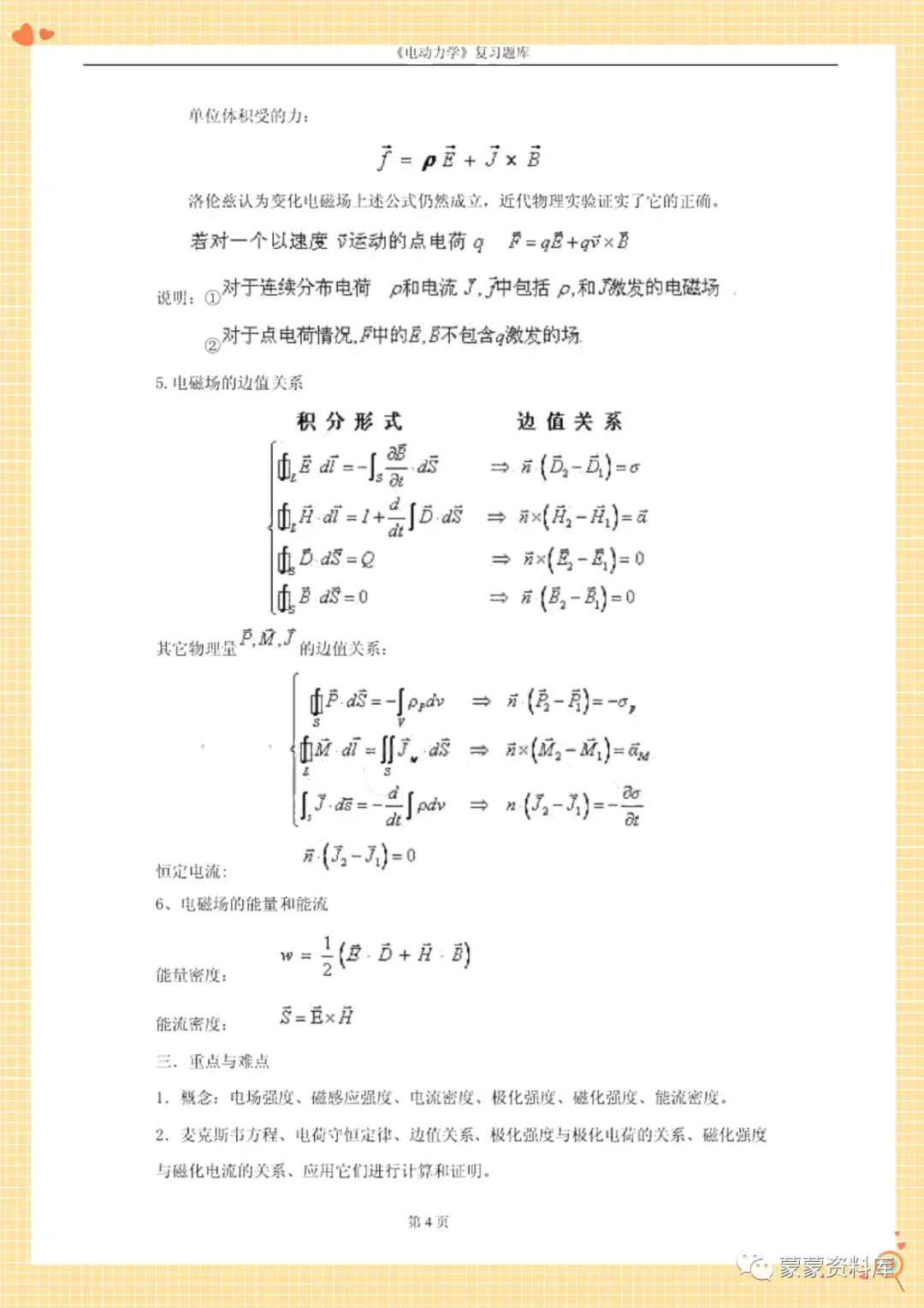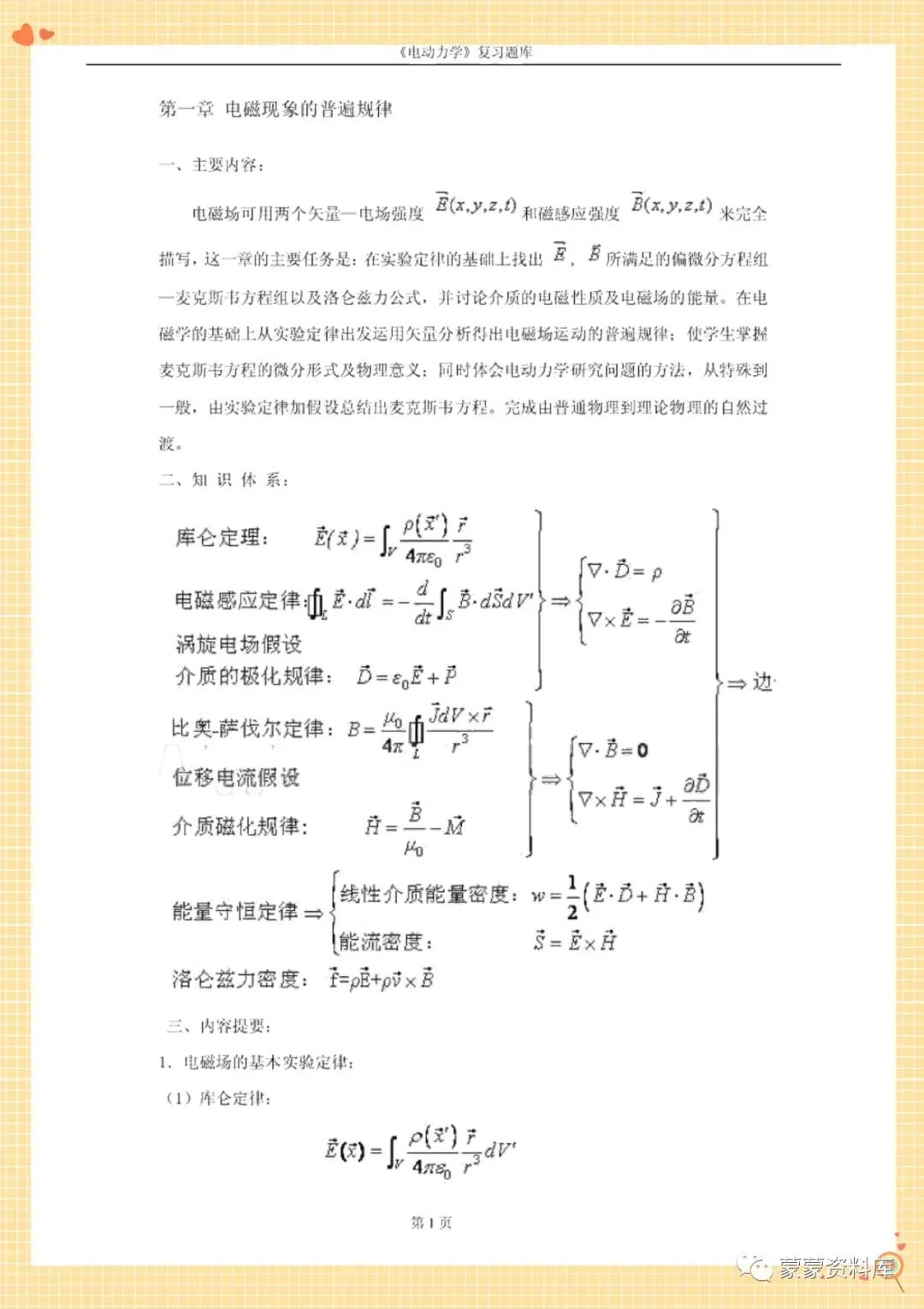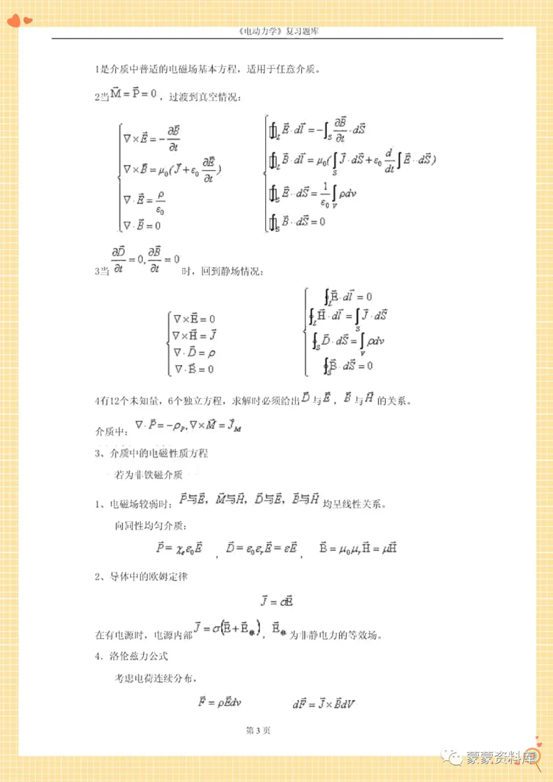 大家好!本期分享的是《电动力学》复习资料,资料有以下3个文档!