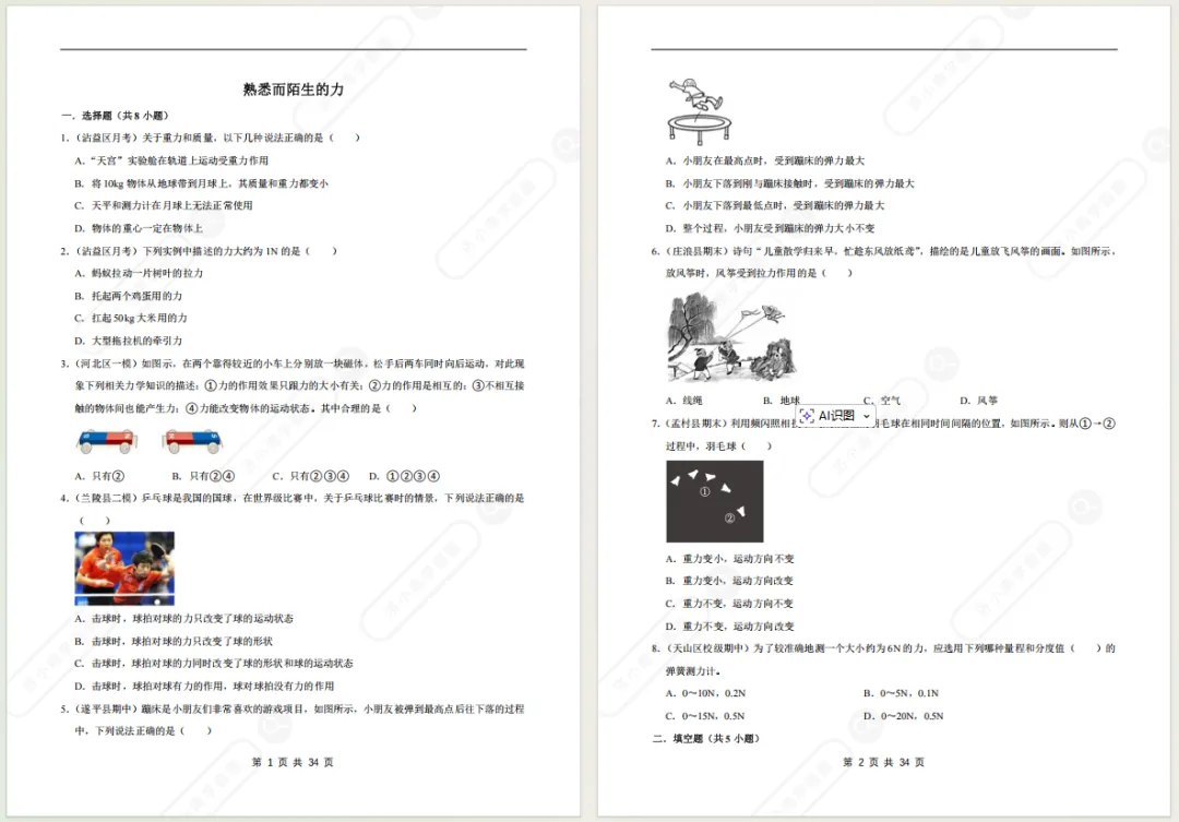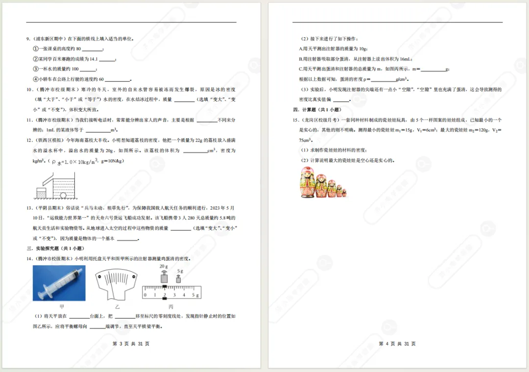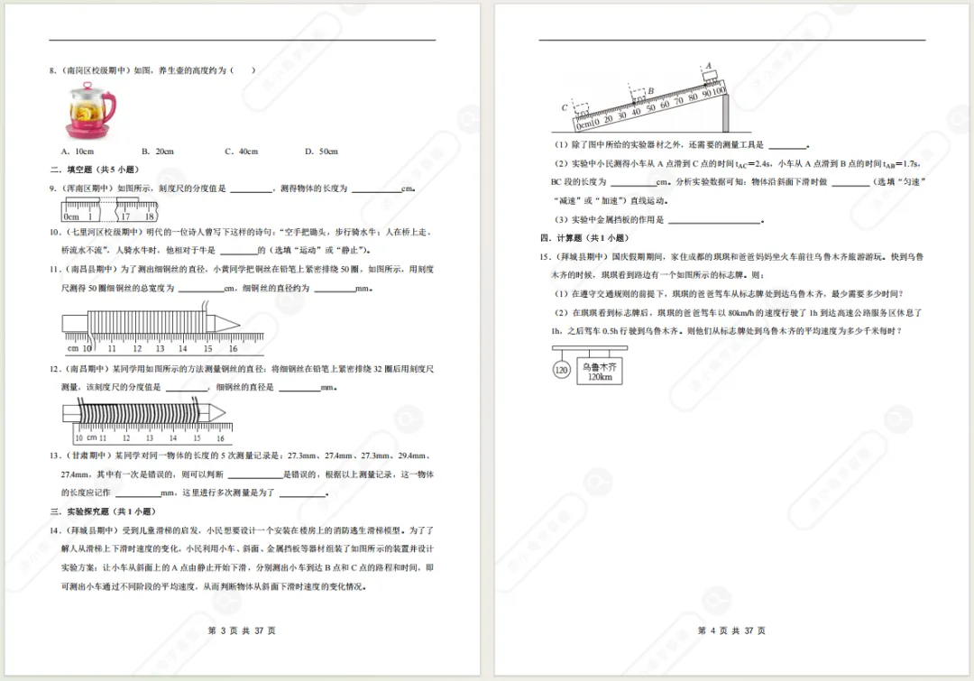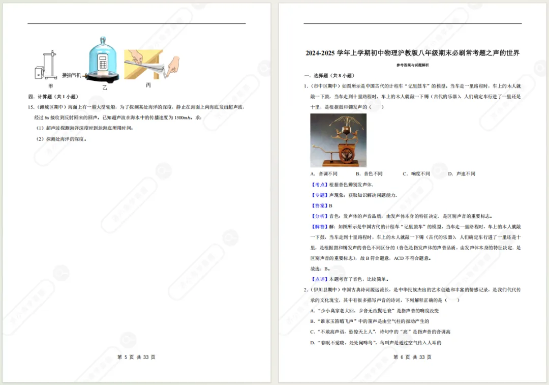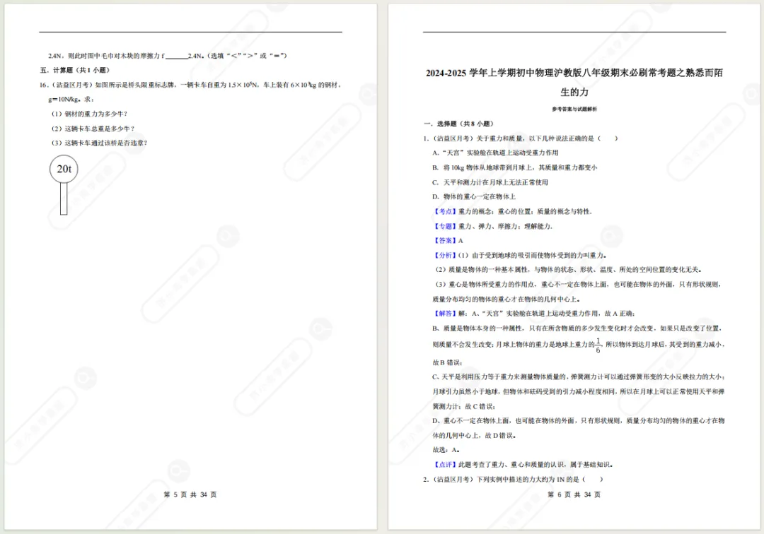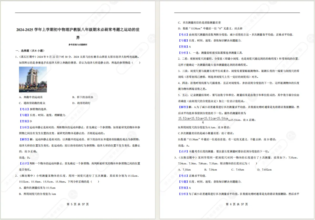 >济南八上物理期末备考专项复习资料!光/透镜/声/力/质量与密度...电子版免费领!