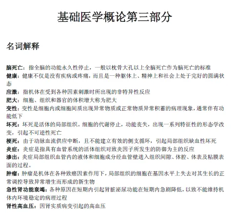 今天要给大家分享的复习资料就是《基础医学概论2》,包含基础医学概论2考试知识点重点、考试试题题库等复习资料,有了这些资料,可以大大缩短备考时间,就算平时没怎么看书,也可以轻松应付期末考试!以下是部分资料截图:
