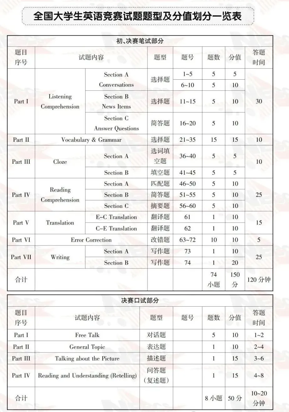 2026年全国大学生英语竞赛题型及分值划分