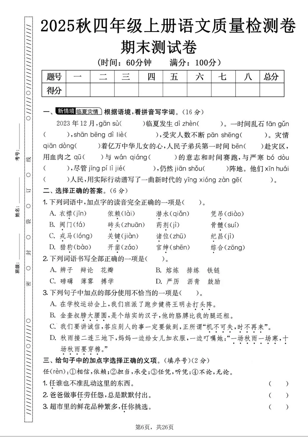 这是2025年秋季四年级上册语文期末复习资料共5套试卷,每份附答案可参考。(①摸底测试卷②质量检测卷③名校真题卷④拔尖测试卷⑤综合素养卷)详细请看以下↓文本