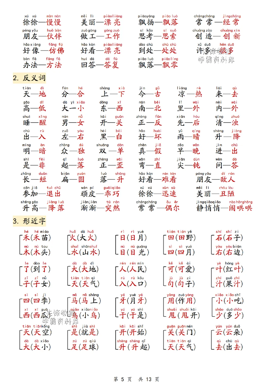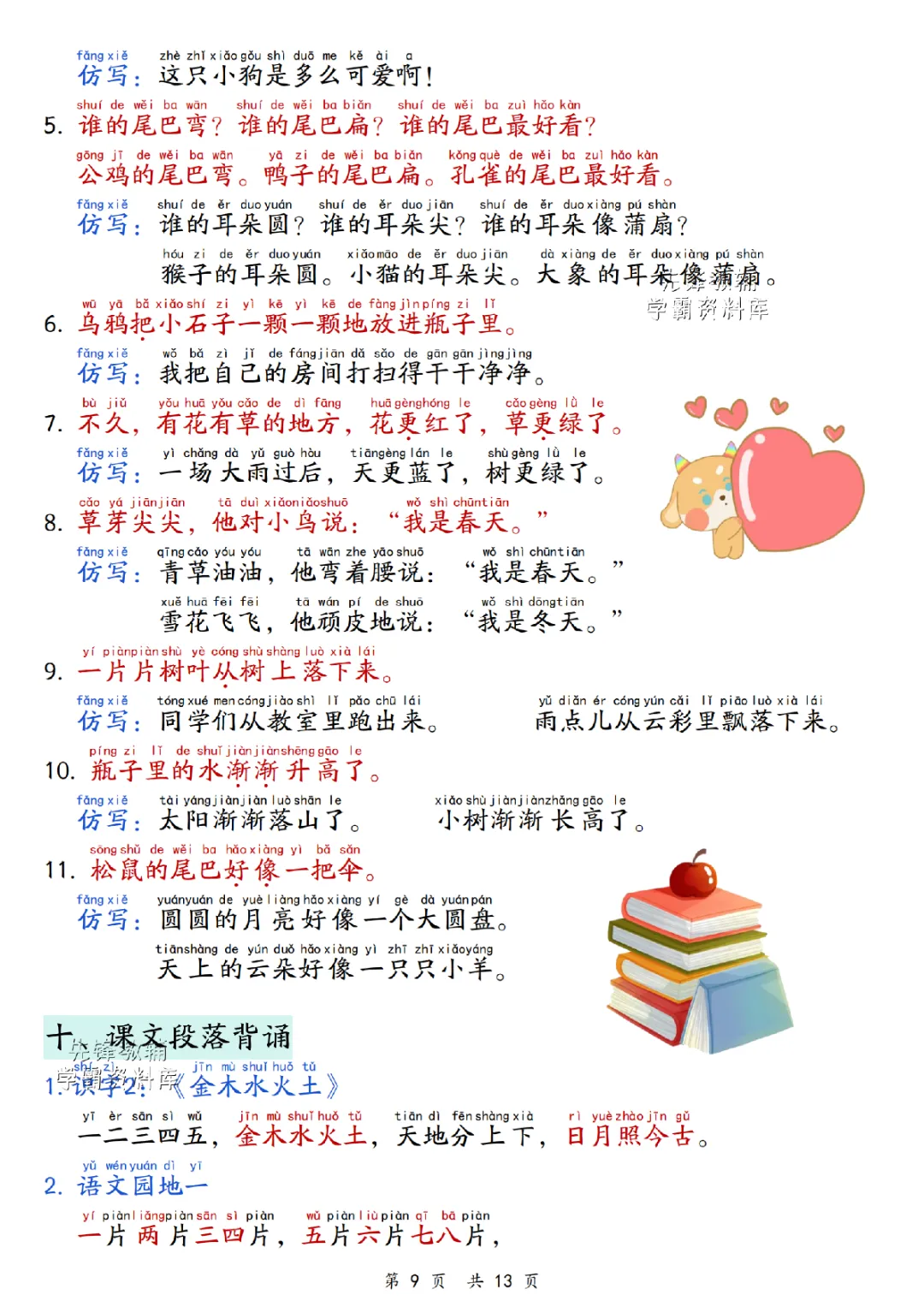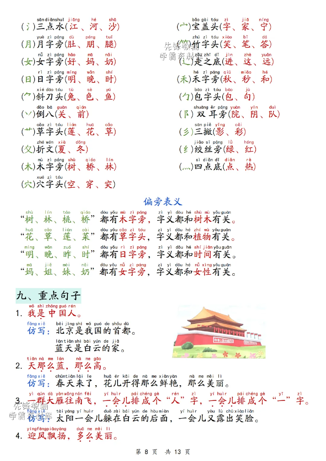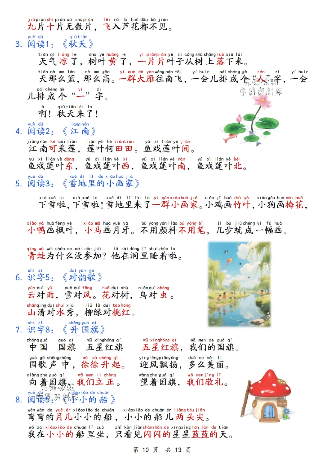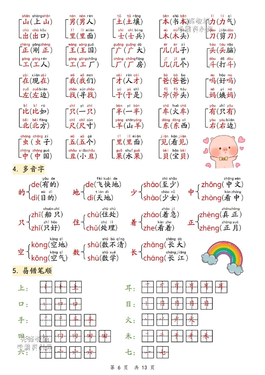 2025秋一年级上册语文《期末复习重点汇总》,电子版可下载打印