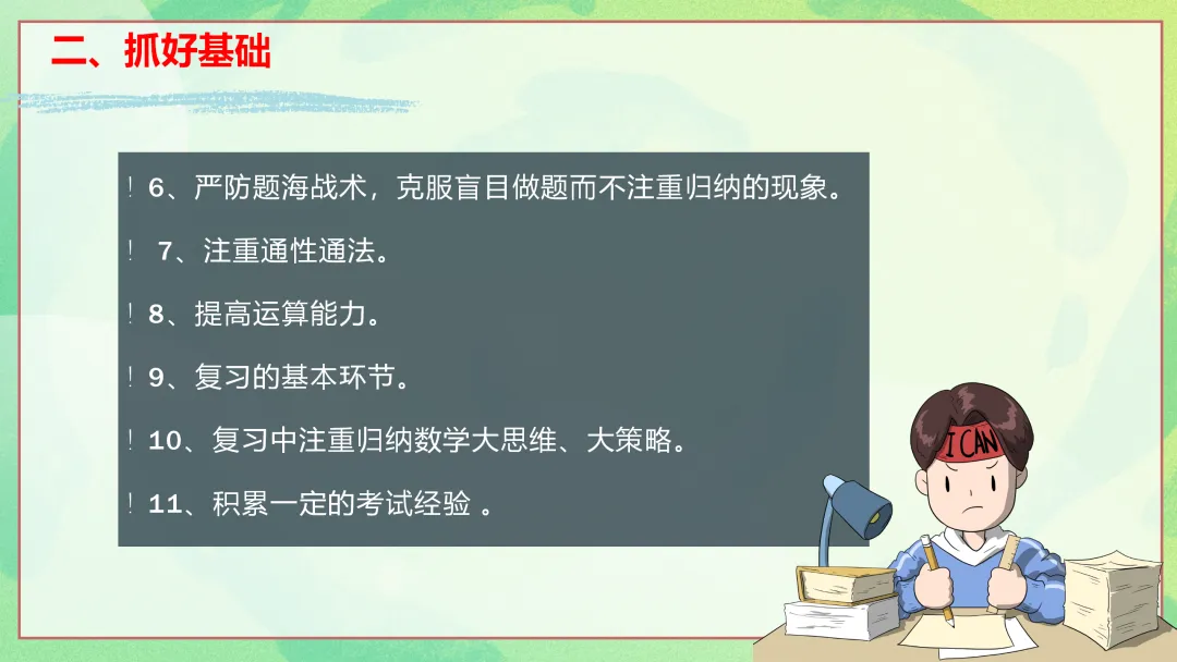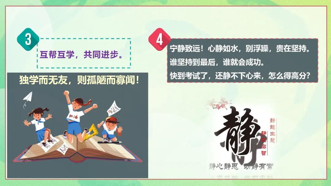 很高兴在这与您相遇,如果您是一位班主任老师,每天除了应对繁重的教学工作,还要加班整理班级、教务、教研、课件PPT资料,请关注下方的“小木教务资料”,让我们风雨同路、一起成长~今天分享的是初高中通用版考前复习指导主题班会期末复习动员|励志主题班会的ppt课件和配套的发言稿,主题是《脚踏实地筑根基,厚积薄发战期末》。《脚踏实地筑根基,厚积薄发战期末》主题班会逐字发言稿