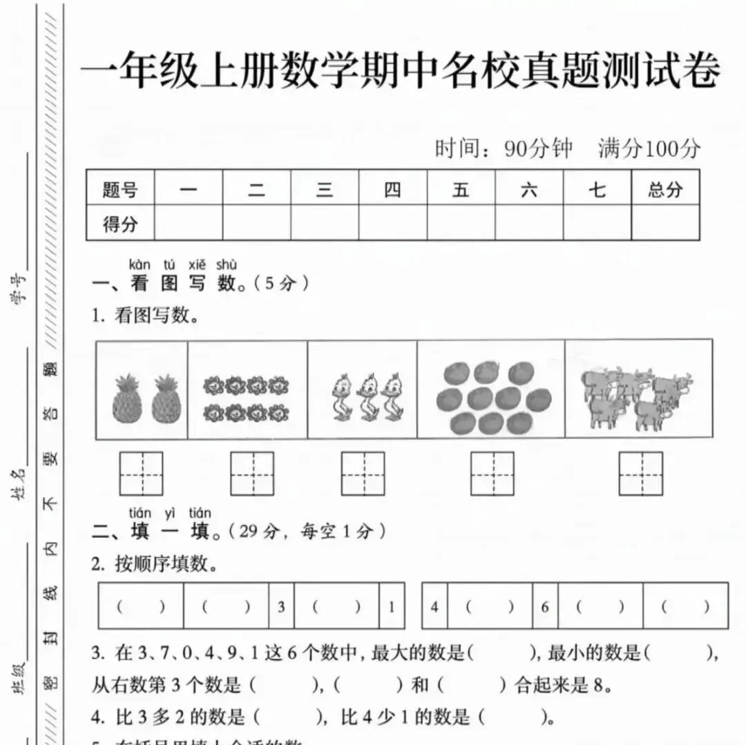 2025年人教版一年级上册数学《期中名校真题测试卷》(共5套,附答案)|完整电子版可打印