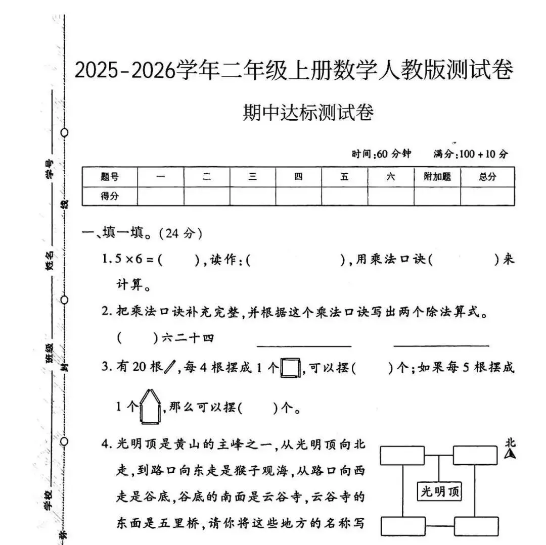 2025年人教版二年级上册数学《期中新情境押题测试卷》(共5套,附答案)|完整电子版可打印