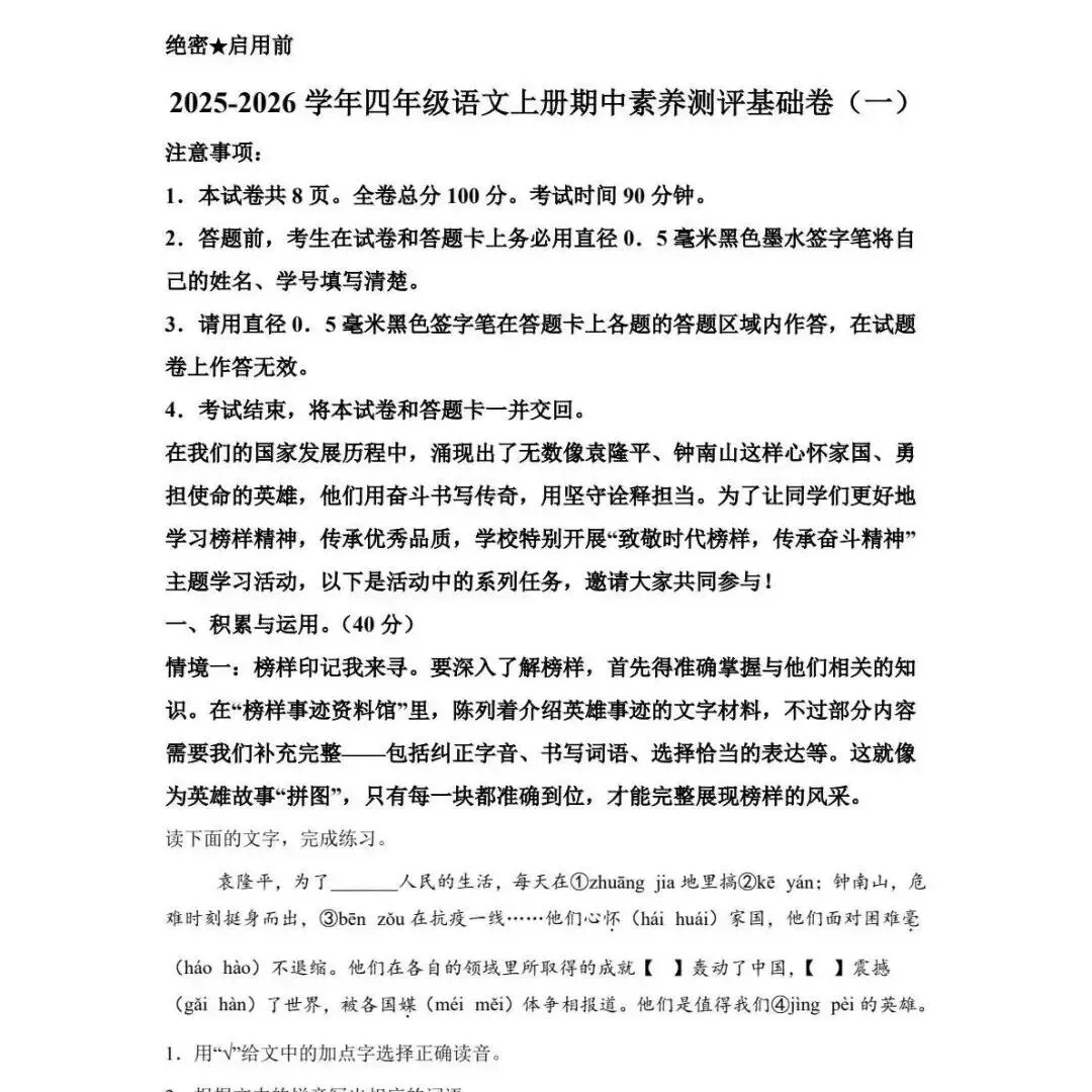 2025年人教部编版四年级上册语文《期中真题摸底测试卷》(共5套,附答案)|完整电子版可打印