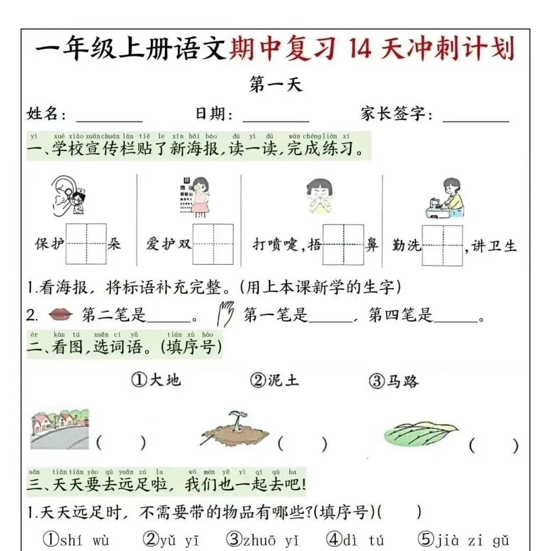 2025年《一年级上册语文期中复习14天冲刺计划(带答案)》,文末附完整版免费下载链接。