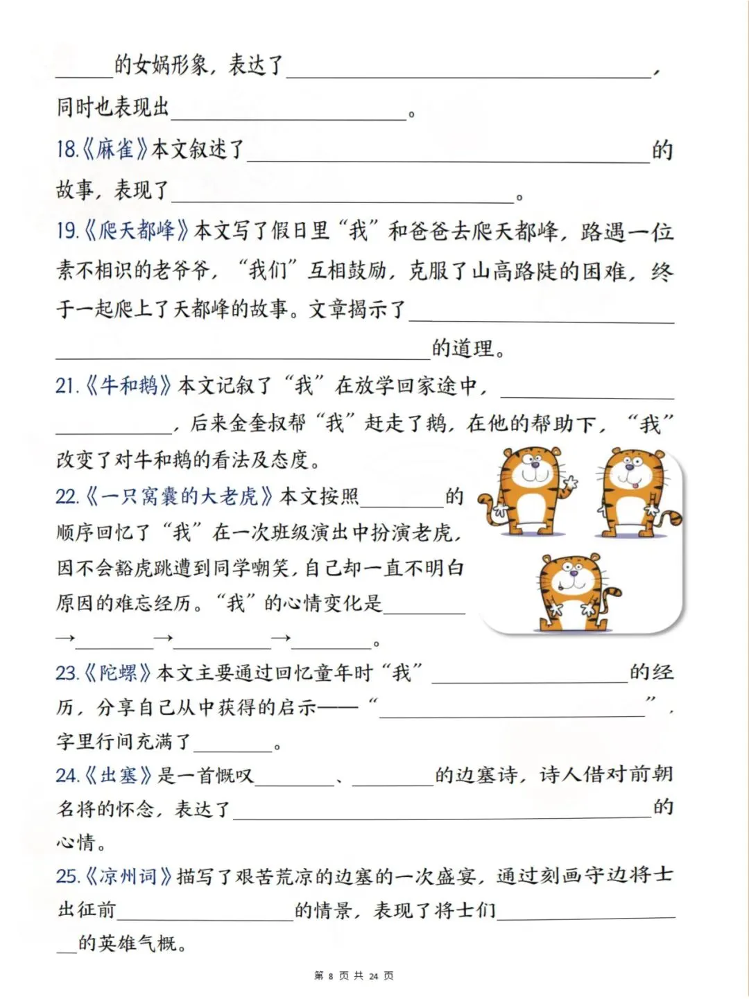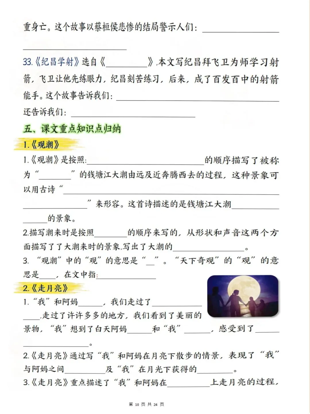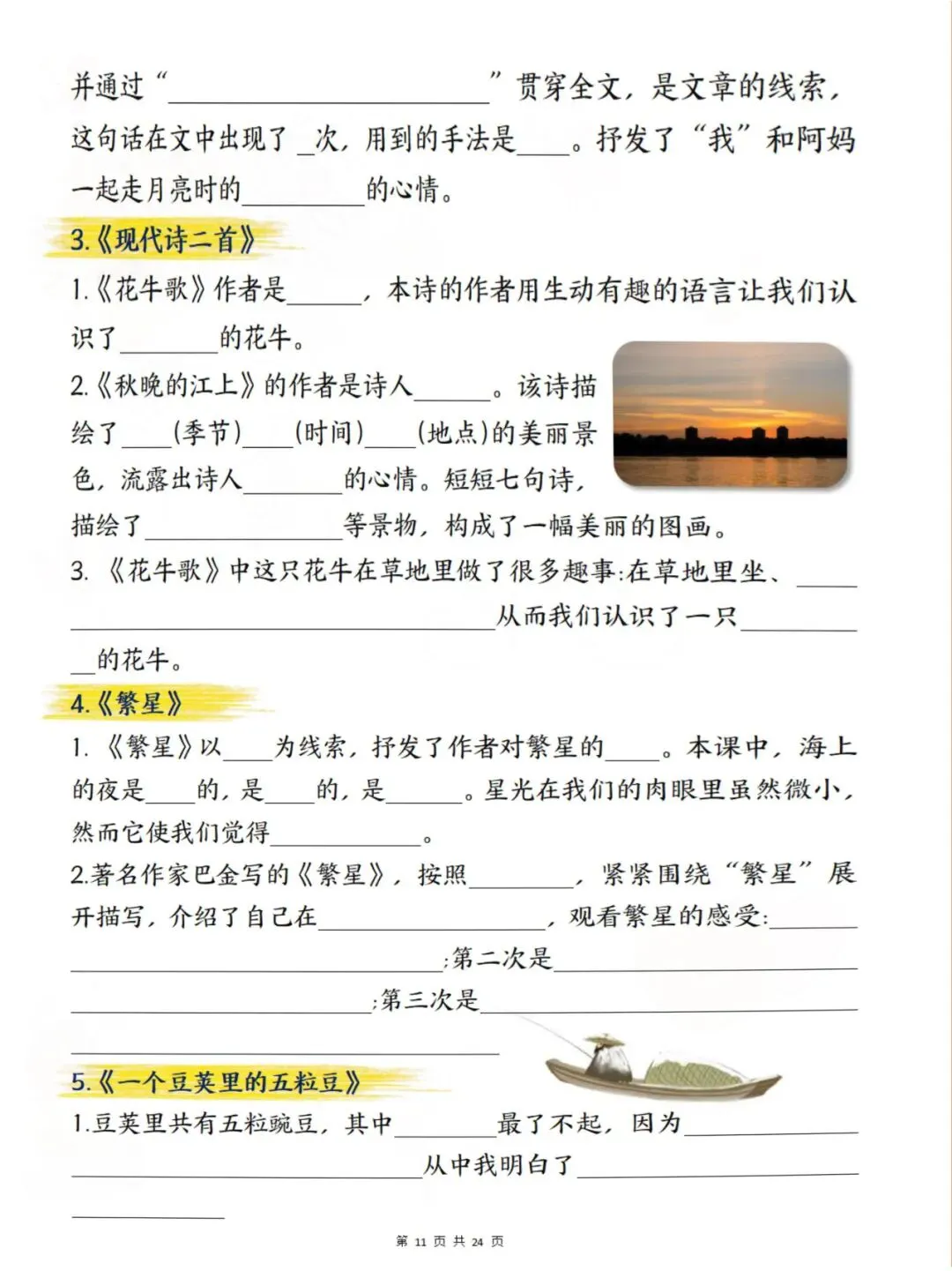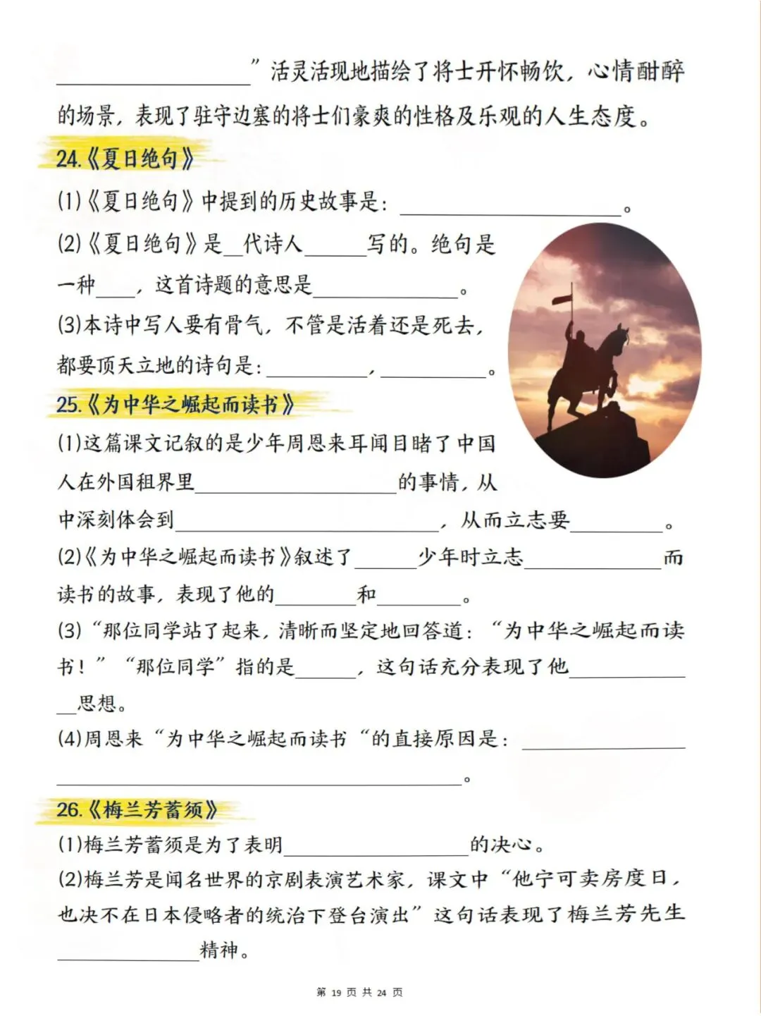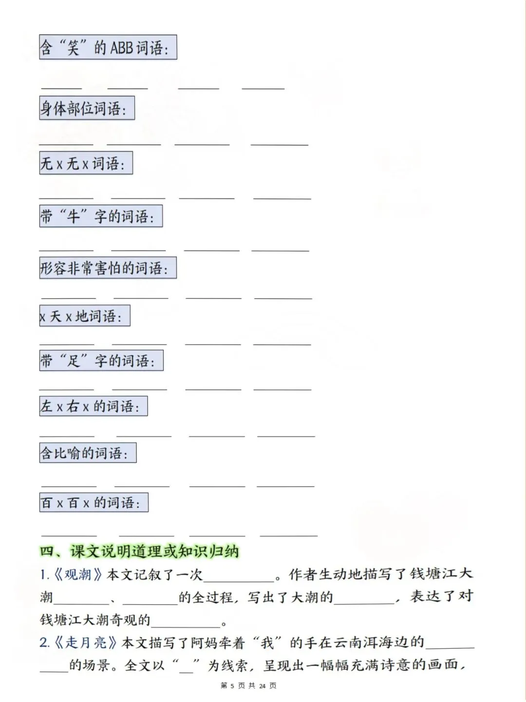 四年级上册语文期末总复习知识点整理(含答案)48页可打印PDF。