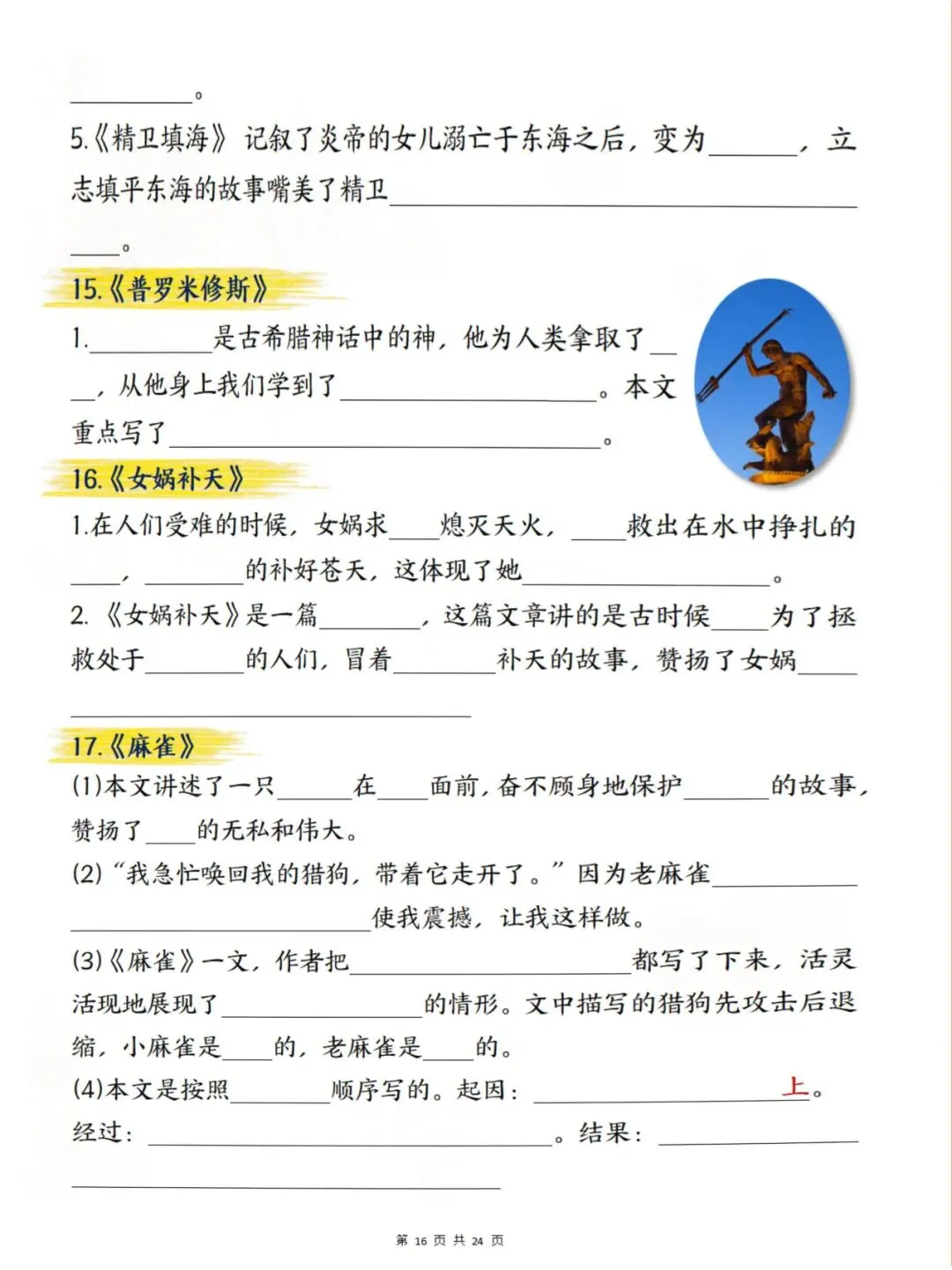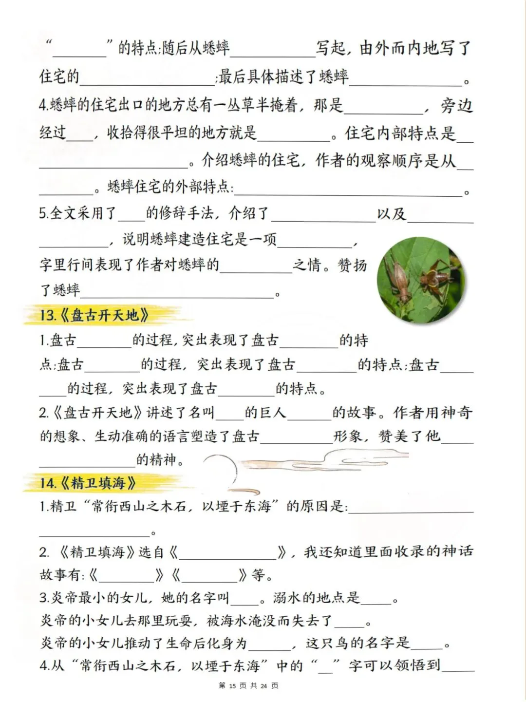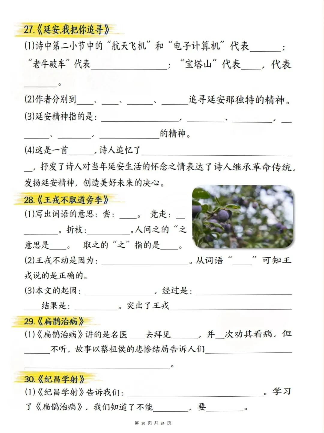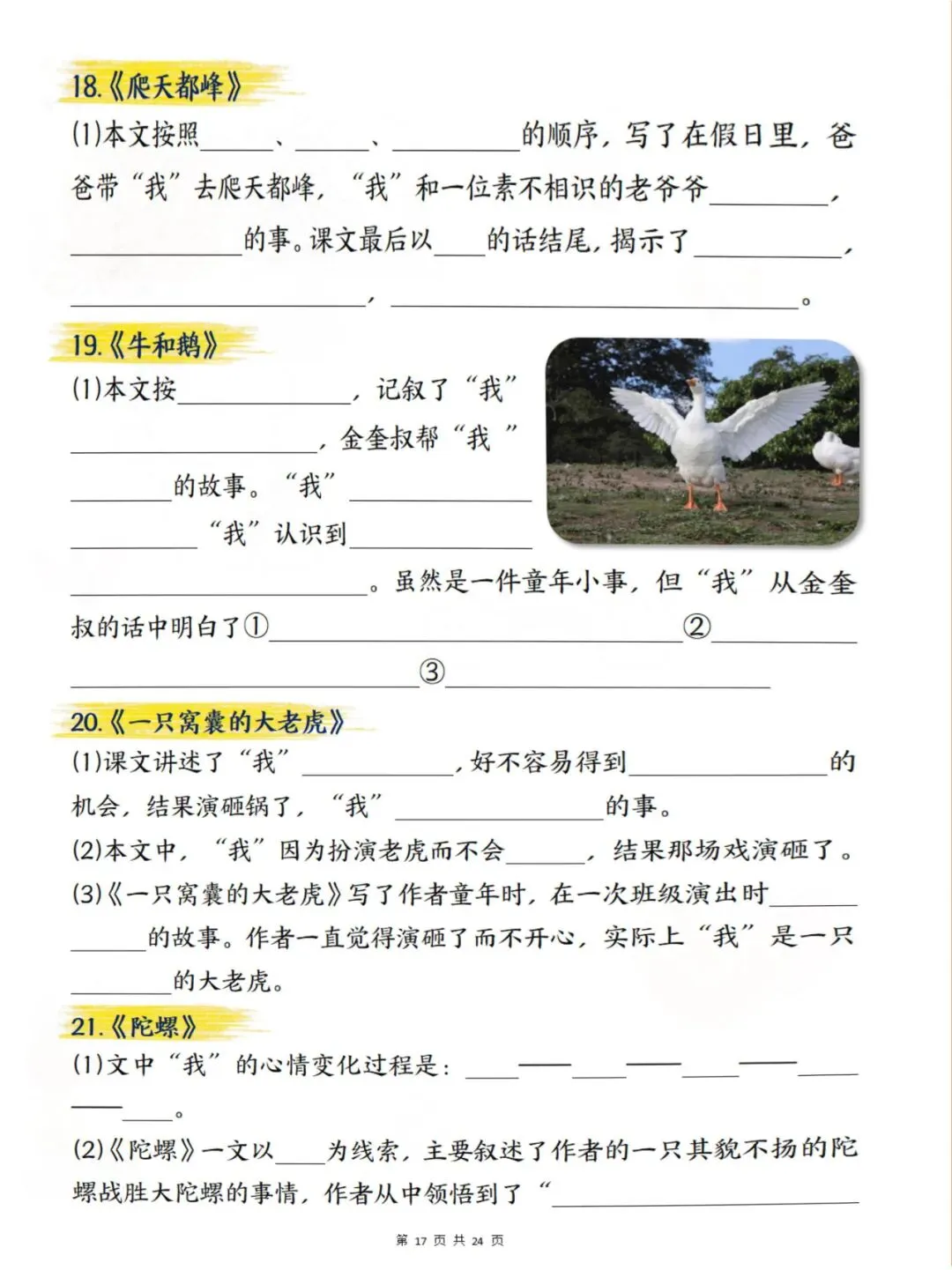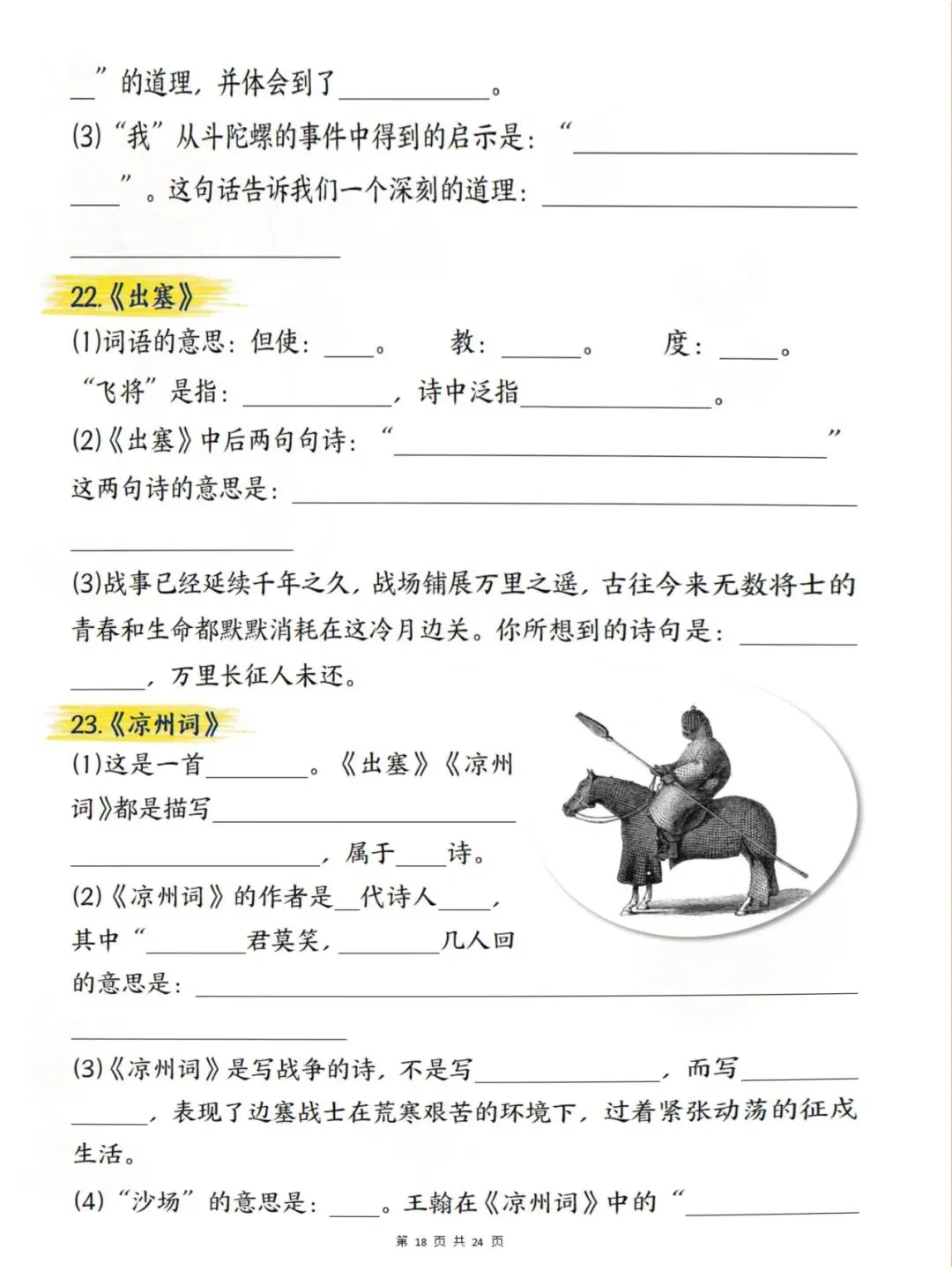 四年级上册语文期末总复习知识点整理(含答案)48页可打印PDF。