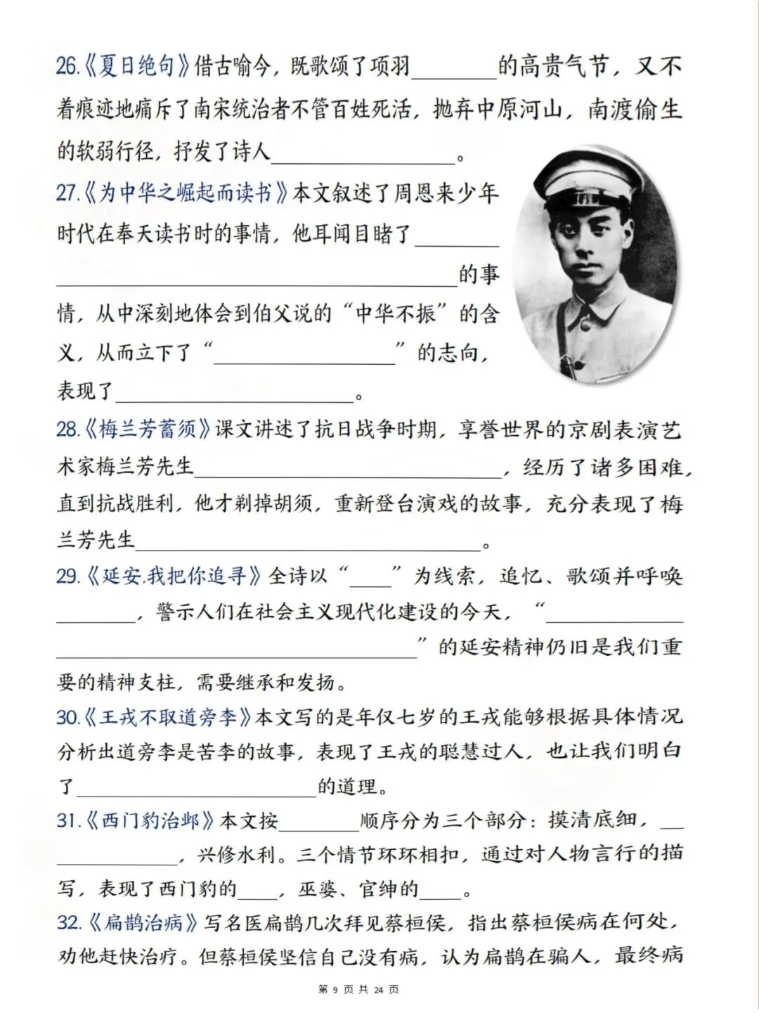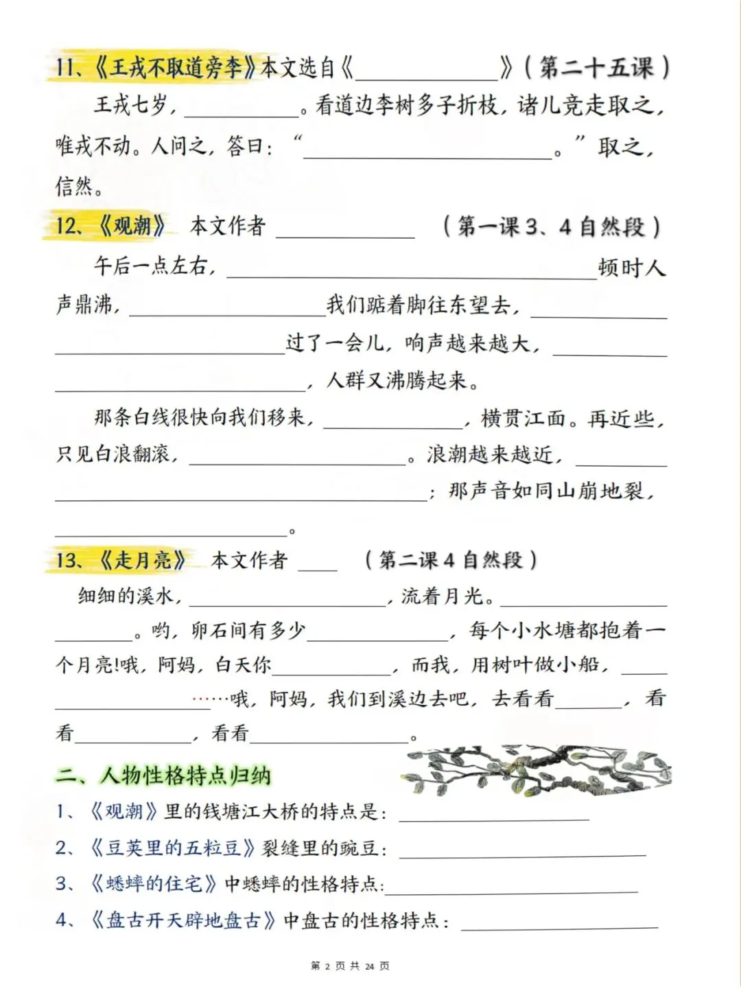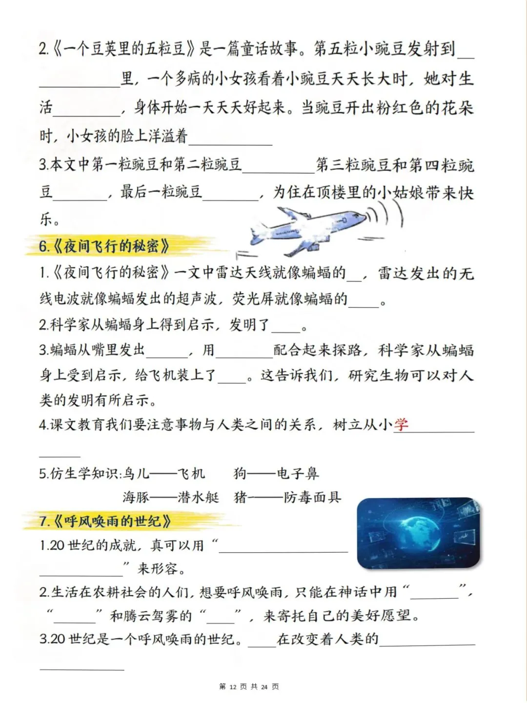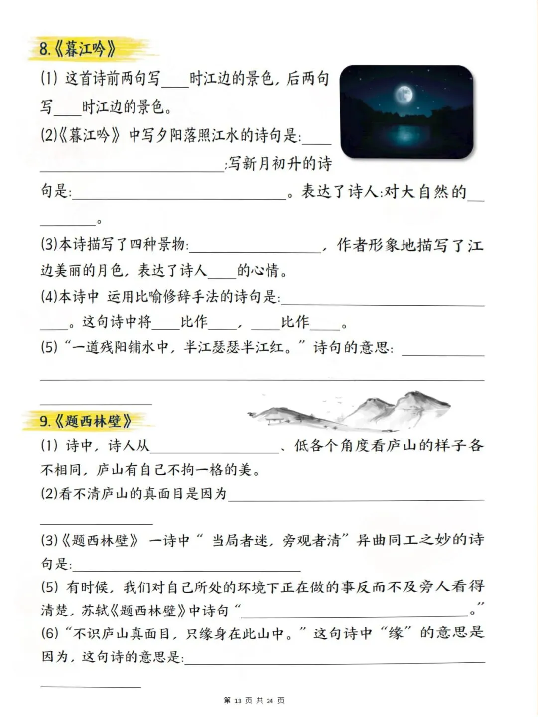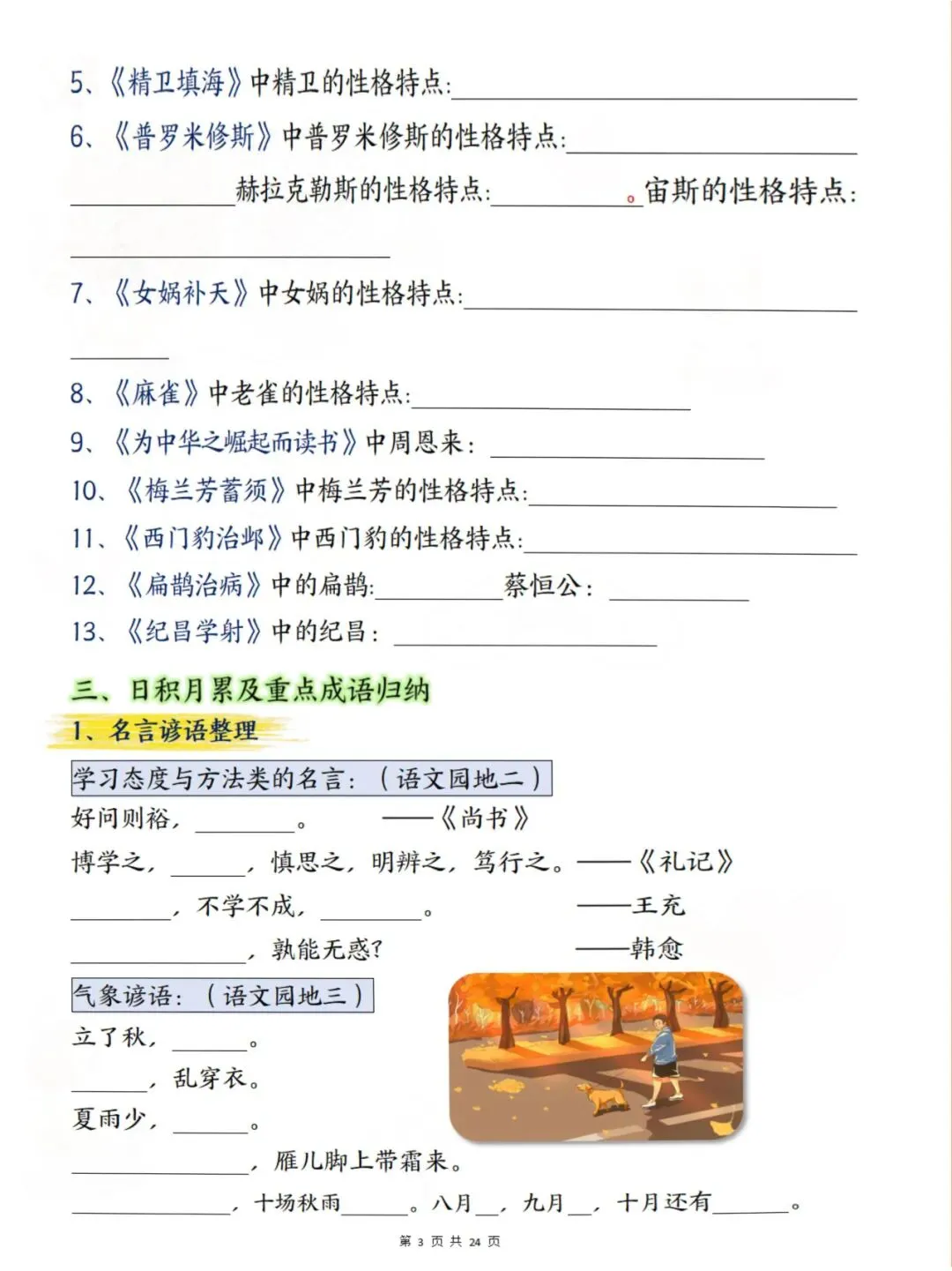 四年级上册语文期末总复习知识点整理(含答案)48页可打印PDF。