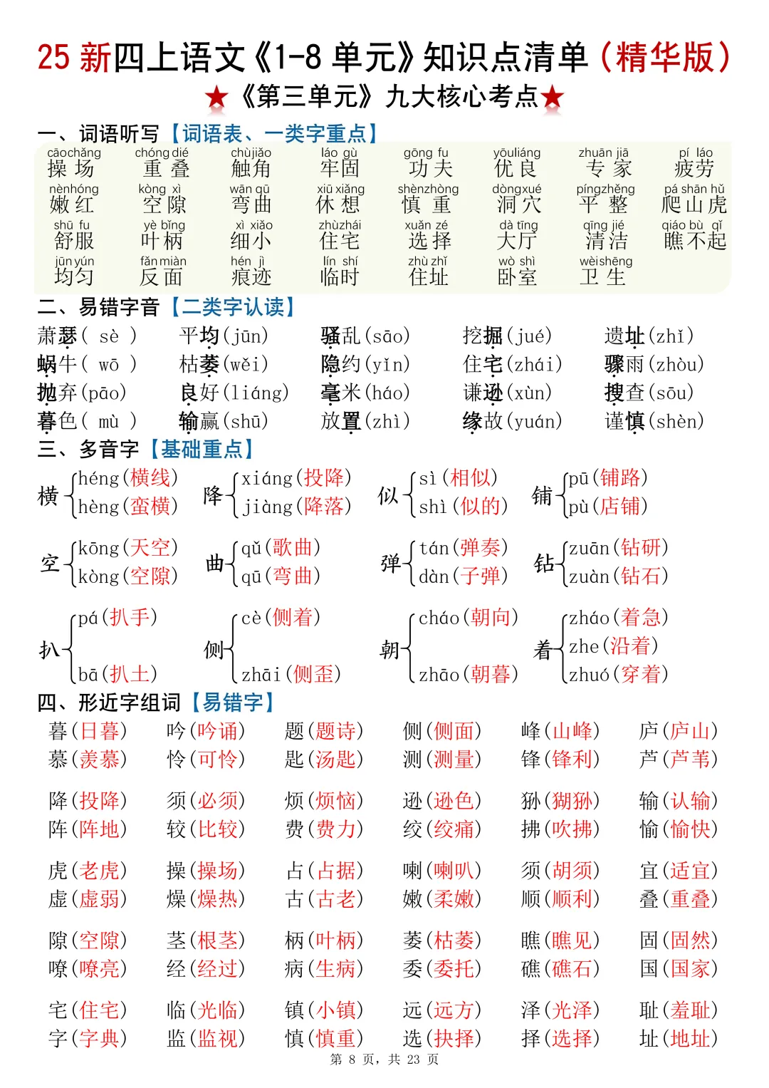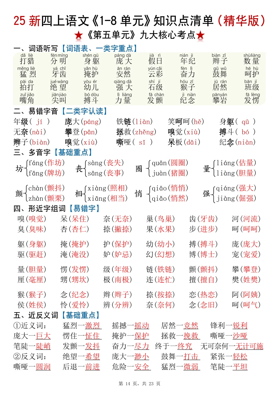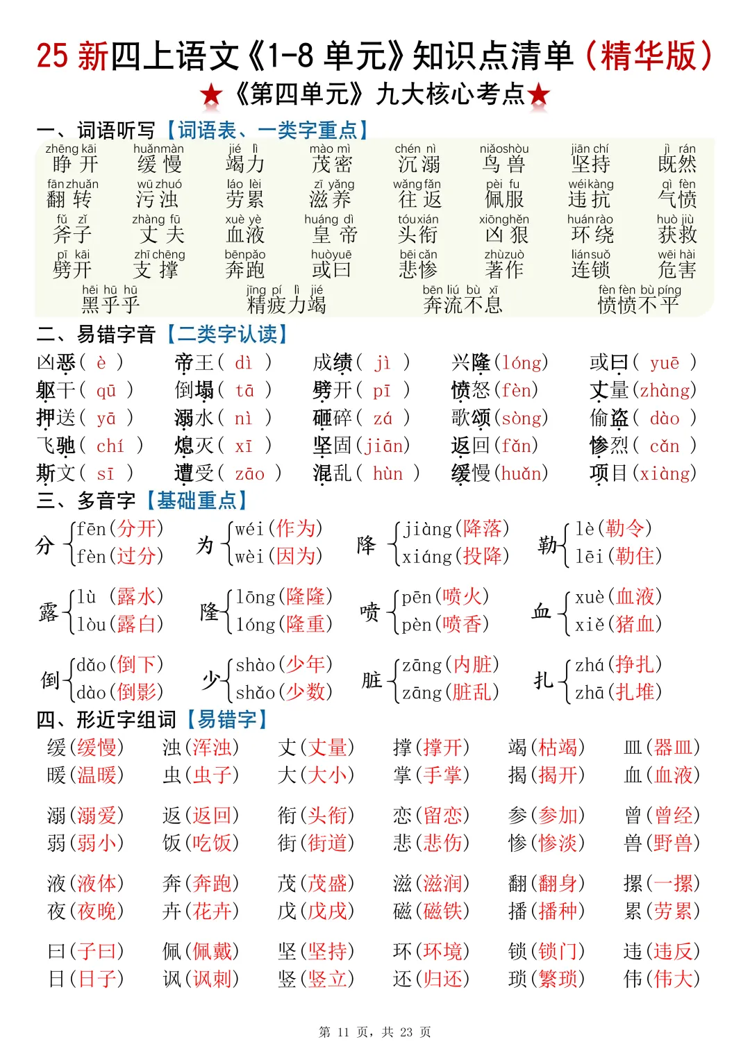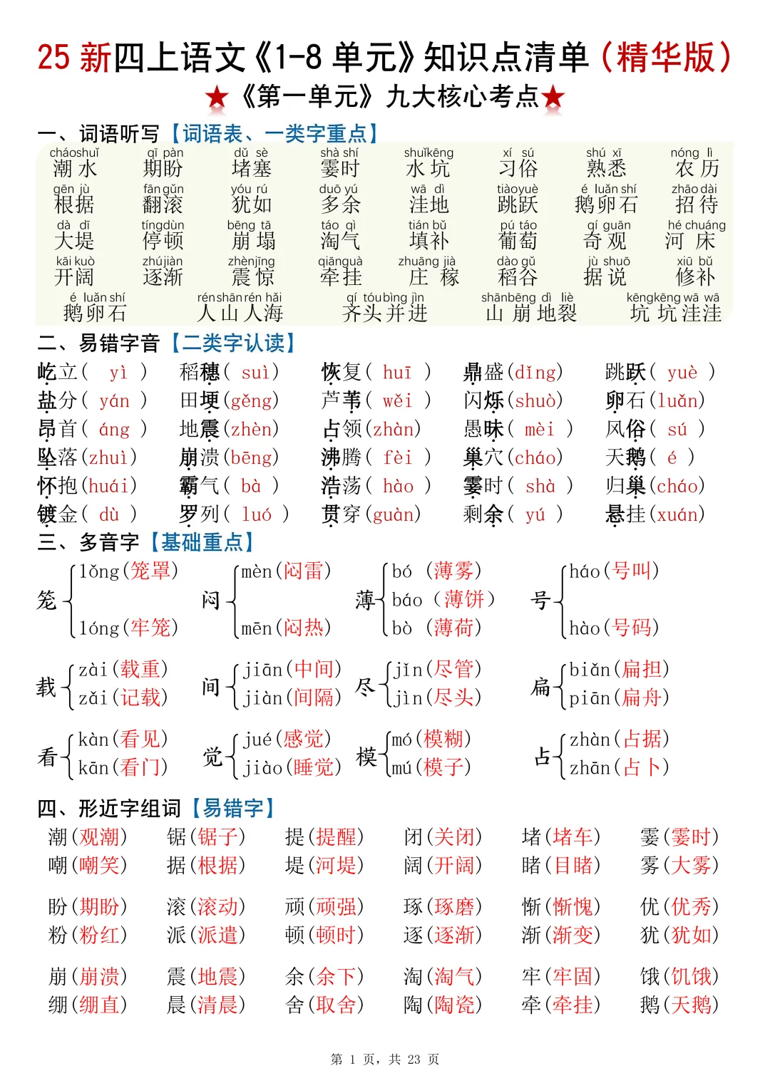 25年秋季小学四年级上册总复习资料,包含秋季课改后新增知识点懂点复习,对于学生来讲,阅读理解和作文是四年级孩子的一大难关,后续准备了详细的解题思路和学习技巧,帮组孩子快速掌握阅读理解和作文写作。